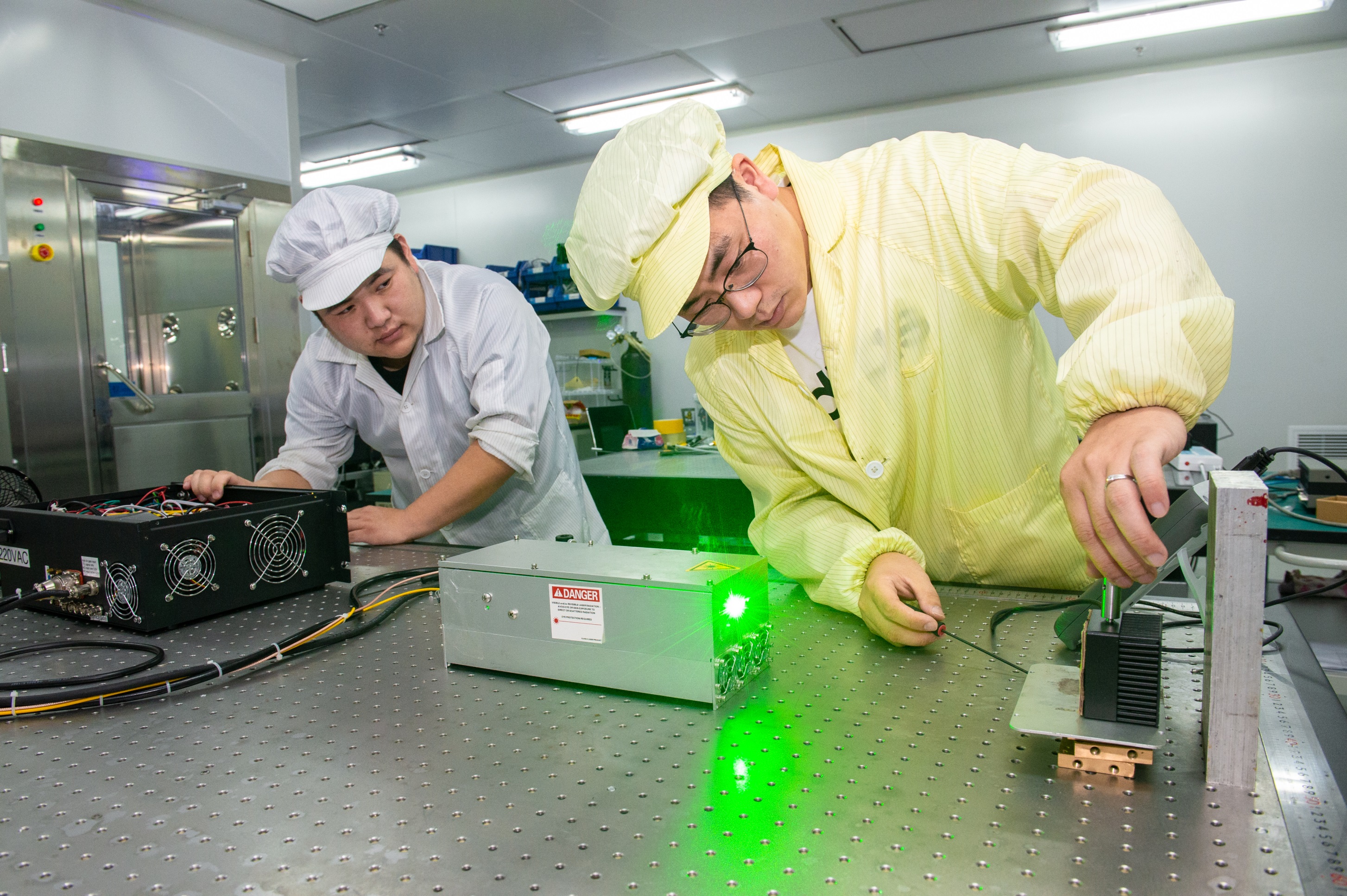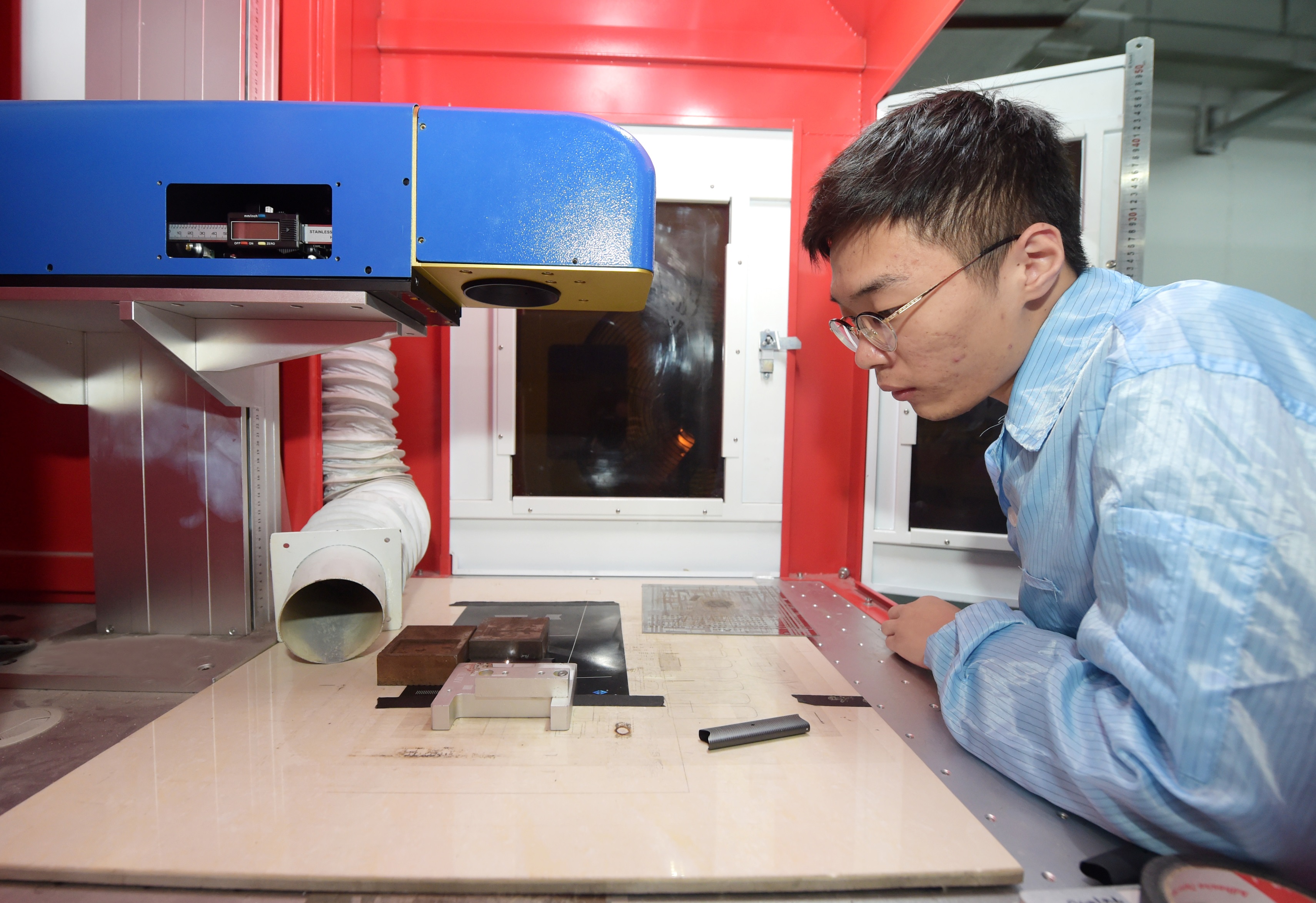 苏州紫光伟业激光科技有限公司的技术人员正在调试激光设备。 陈佳琪 摄