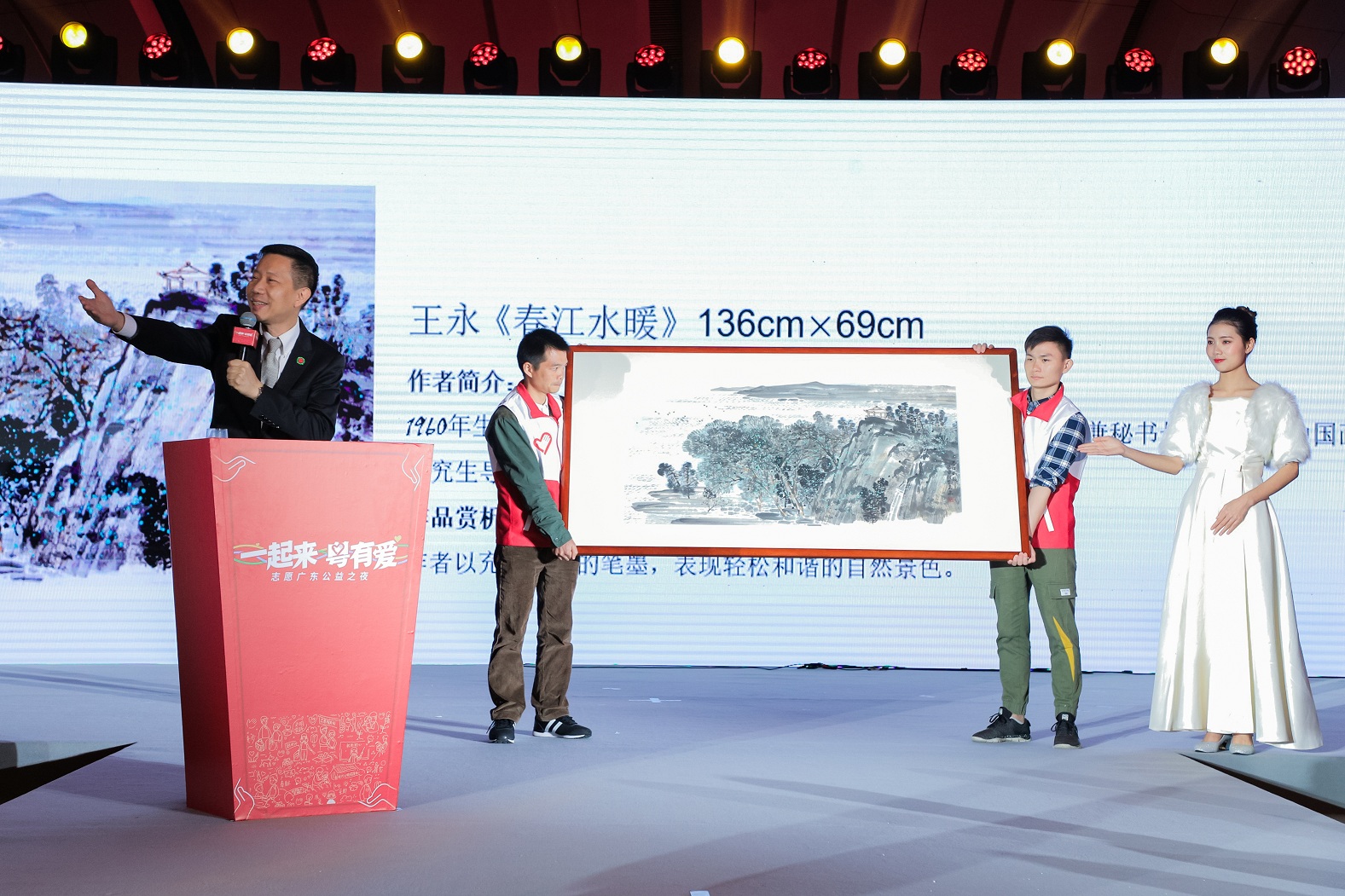 艺术家们投身于公益事业,将艺术情怀和艺术价值作为公益传播的介质,感召企业界爱心人士参与志愿公益事业。本次活动得到了许钦松、李劲堃、林蓝、谢楚余、王永、方土、张彦、孙洪敏、梁宇、陈湘波、李东伟、黄唯理、郑阿湃、许敦平、李若晴、宋陆京、许晓彬、古锦其、陈朋、朱光荣等书画名家和社会爱心人士的大力支持,共计23幅书画作品,其中还有黄昌伟捐赠的岭南画派创始人高剑父作品一幅、廖满雄捐赠的广绣作品一幅。中国男子篮球队主教练杜锋和知名足球运动员冯潇霆则捐出签名篮球、球星卡和球衣参与公益义卖。经激烈角逐,广东一真建设有限公司、李建炜、时代公益基金会、广州宝祺来贸易有限公司、东升事业慈善基金、东莞市亚冠餐饮管理有限公司、广州点动信息科技股份有限公司、异辉控股、东莞市以纯集团有限公司、温毅强、郑耀南、广粤锦泰集团有限公司、孙德寿、广东皓业电器实业有限公司、广东光大企业集团有限公司、张晓东、林楚雄、广东合地集团股份有限公司、广州立威化工科技有限公司、广州市冠军实业发展有限公司、黄昌伟(按义卖认购顺序排序)成功竞得义卖品,累计义卖金额达871万元。活动现场,碧桂园集团向广东省青少年发展基金会“广东青联杜锋基金”捐赠1000万元支持建设“杜锋篮球场”。此外,与会爱心人士还通过扫码等方式捐款6万余元支持志愿广东建设。本次活动所筹集资金将全部用于志愿服务项目实施、志愿者成长关爱、志愿服务组织扶持等利于推动广东志愿服务制度化常态化发展所需。