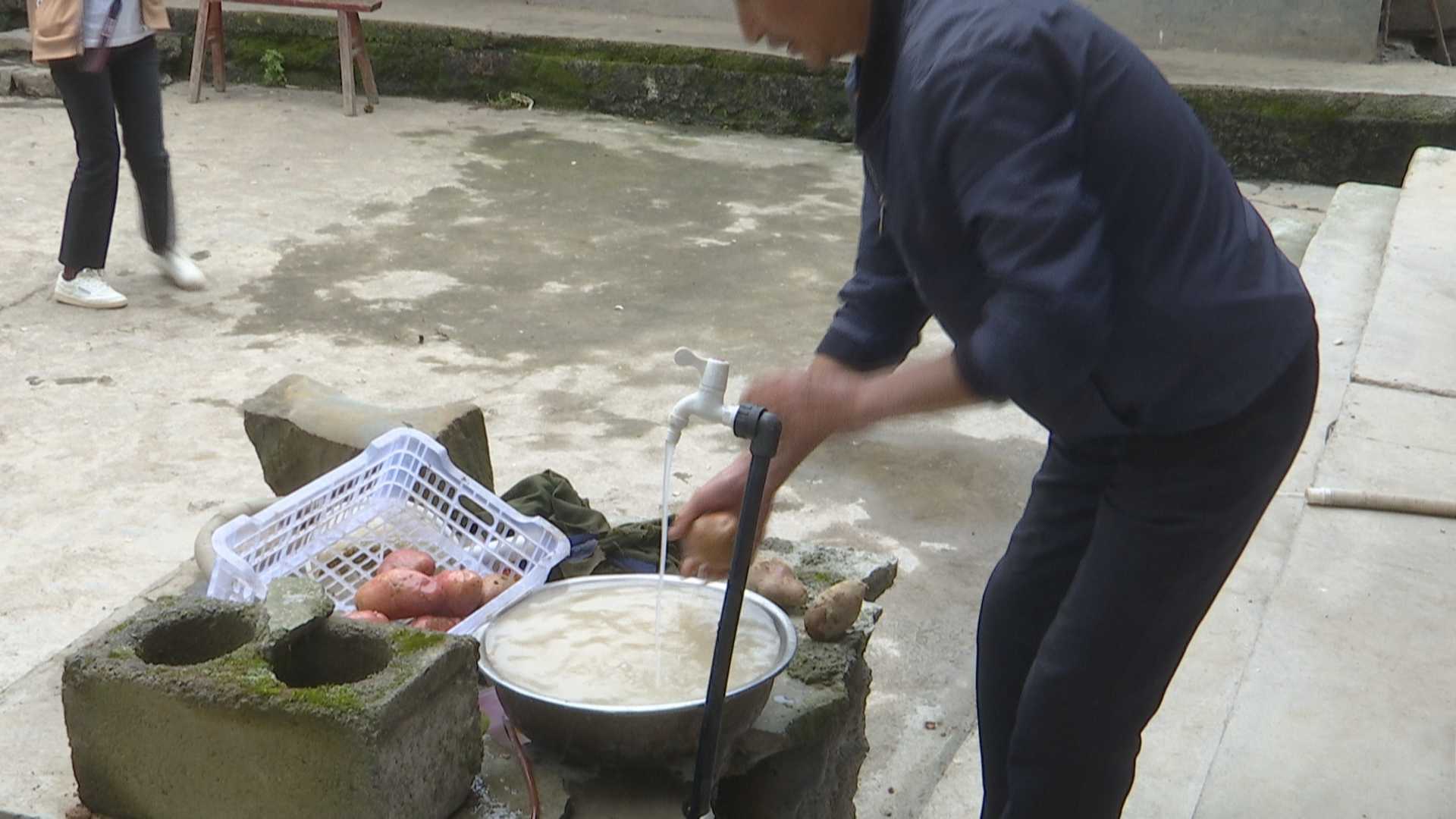 村民彭纪学:“以前我们这里用水是用地下水,要用水泵抽起来才得用水,现在都安装上了引水管道,扭开水龙头洗什么都方便。”