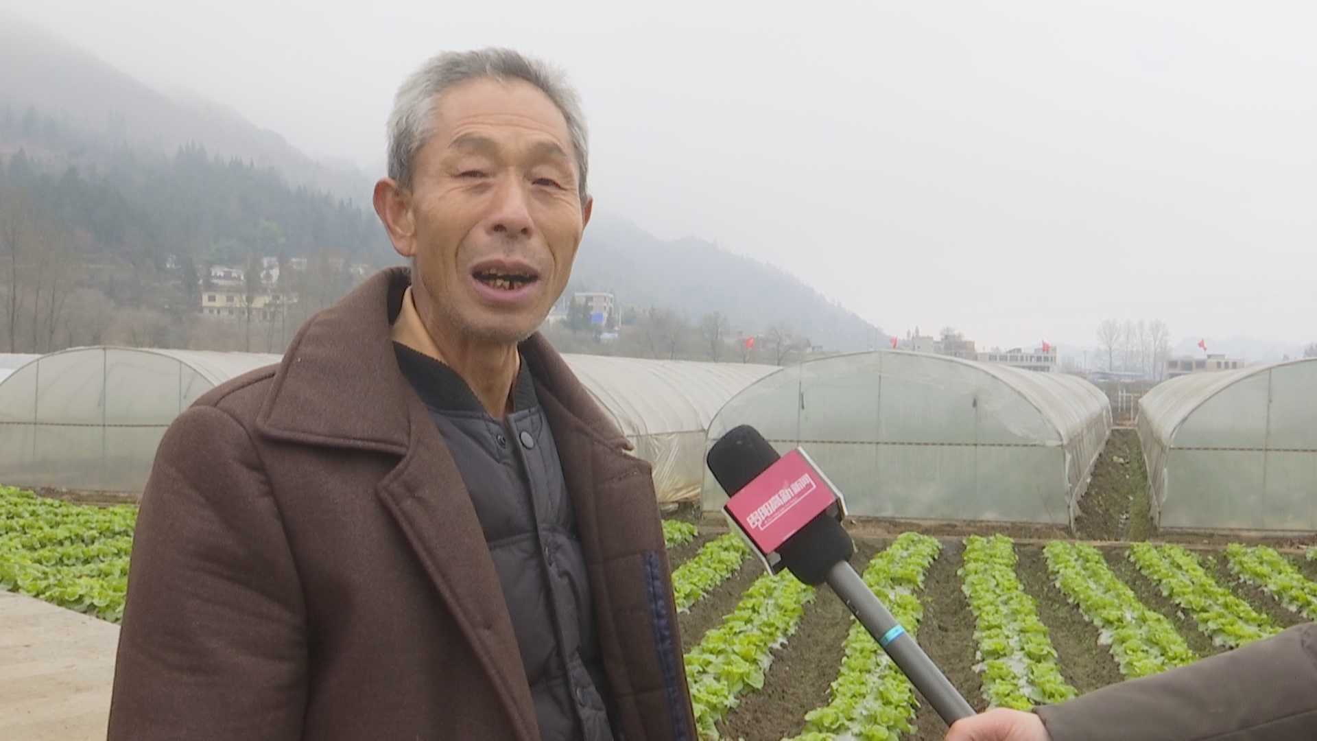 村民陈典发:“这个大棚建起来了,草莓也种起了,通过种植一天就有100元的收入,现在我们的生活也一天又比一天好了。”