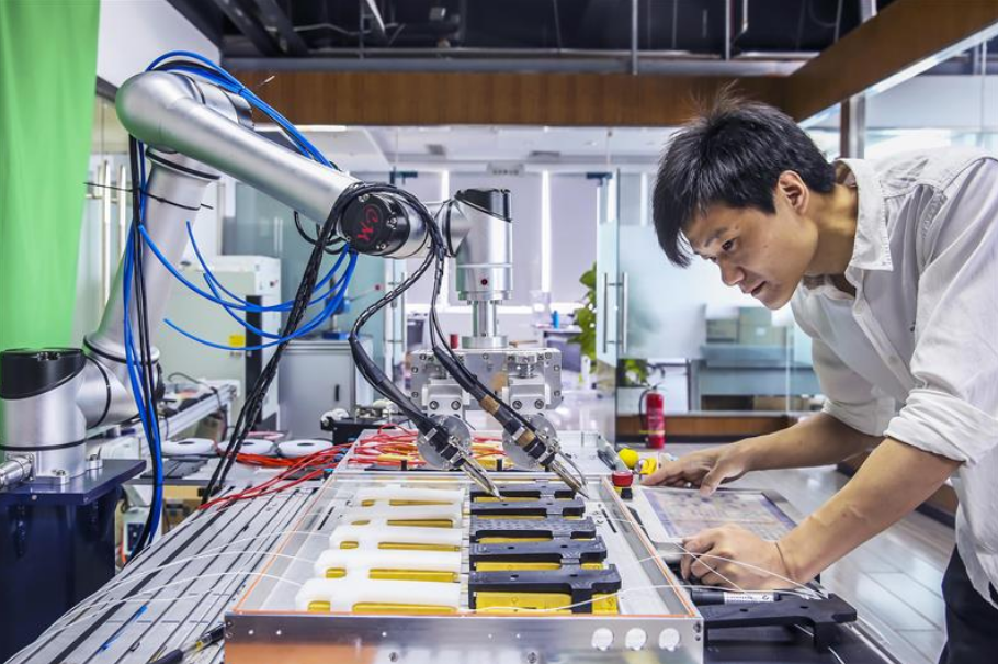 2019年8月7日,技术人员正在对协作机器人程序进行调试。位于武汉光谷未来科技城的库曼机器人(武汉)有限公司研发六轴智能协作机器人,能替代焊接、打磨、精密装配等工种操作,具有轻巧灵活、易用安全、一教就会的优势,能满足工业生产中众多工位的生产需求,帮企业解决用工难、用工荒问题。湖北日报全媒记者 梅涛 通讯员 舒睿 摄