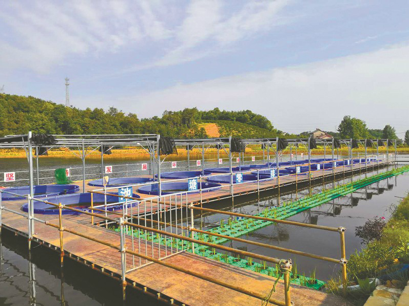 在仙女镇鲁港村“一尘水产”养殖基地,数千条鱼儿正在流水编织的“跑道”上做着“有氧运动”。
