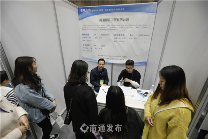 11月16日,江苏南通国际会议中心,“紫琅之约——崇川区人才招聘·技术创新校企对接洽谈会”在这里举行,127家企业提供2500多个就业岗位,吸引3500多名大学生进场咨询求职。