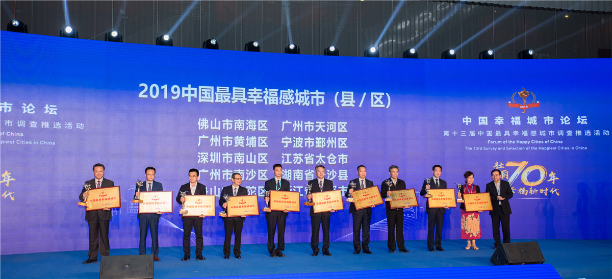 2019中国幸福城市论坛11月25日在广州举行,并发布2019中国最具幸福感城市榜单。佛山市南海区入选2019中国最具幸福感城市(县级)榜单,还获得2019年中国最具幸福感城市(单项奖)居民收入获得感强区的荣誉。这是南海第二次被评为“最具幸福感城市”。