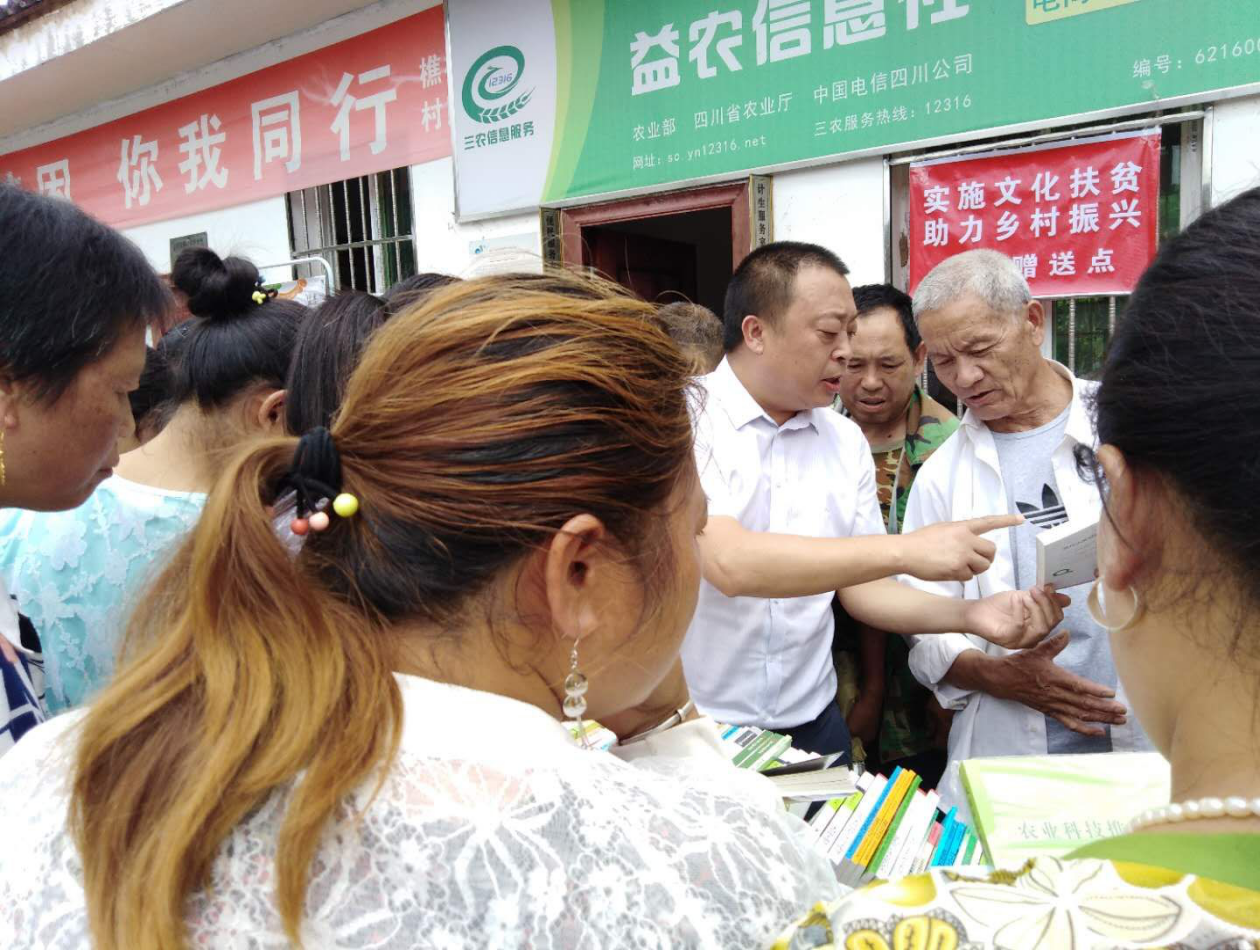 在金鸡镇樵村开展的图书赠送活动现场