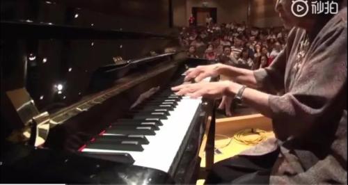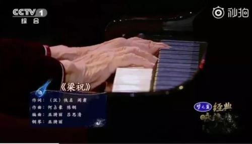 她在著名小提琴演奏家吕思清的搀扶下走向钢琴,共同演奏中国千古绝唱《梁祝》,钢琴小提琴相织相融,感觉世界都安静下来了。