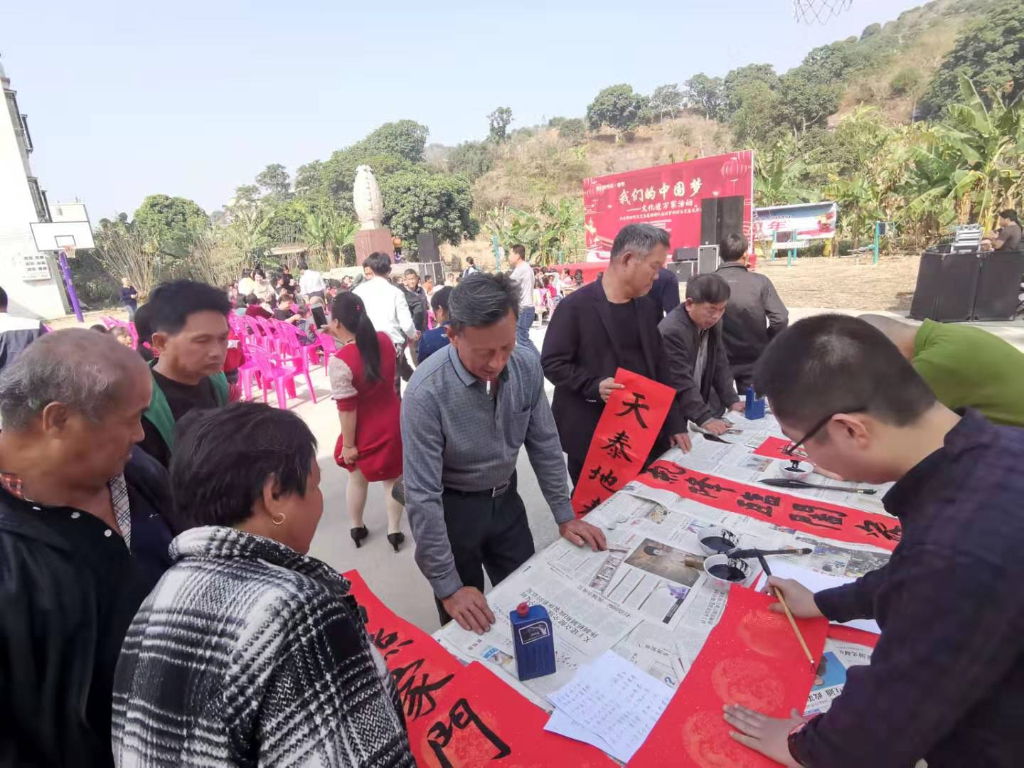 书法家向村民赠春联。