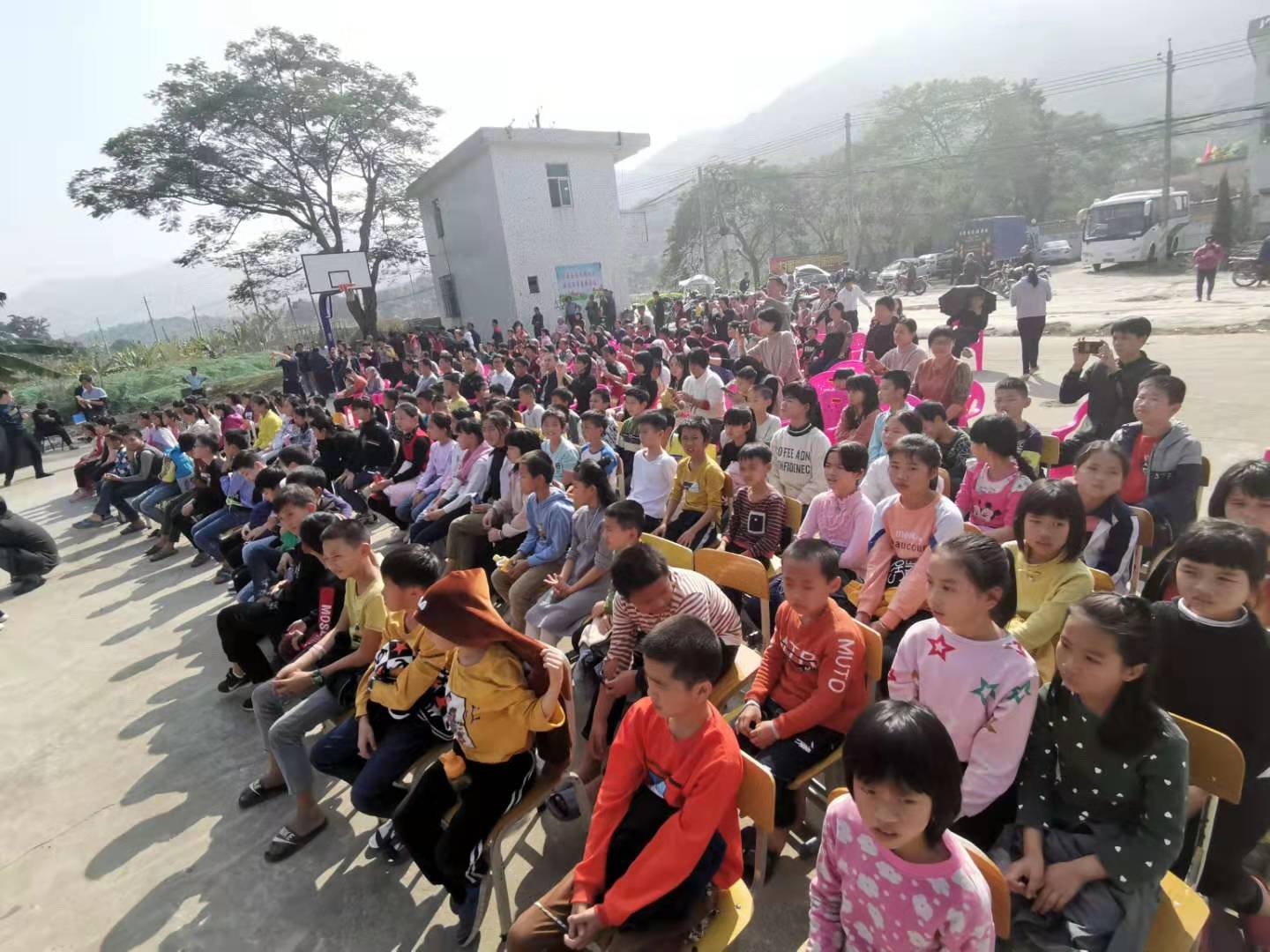 文艺轻骑队精彩的演出给村娃们带来欢乐。