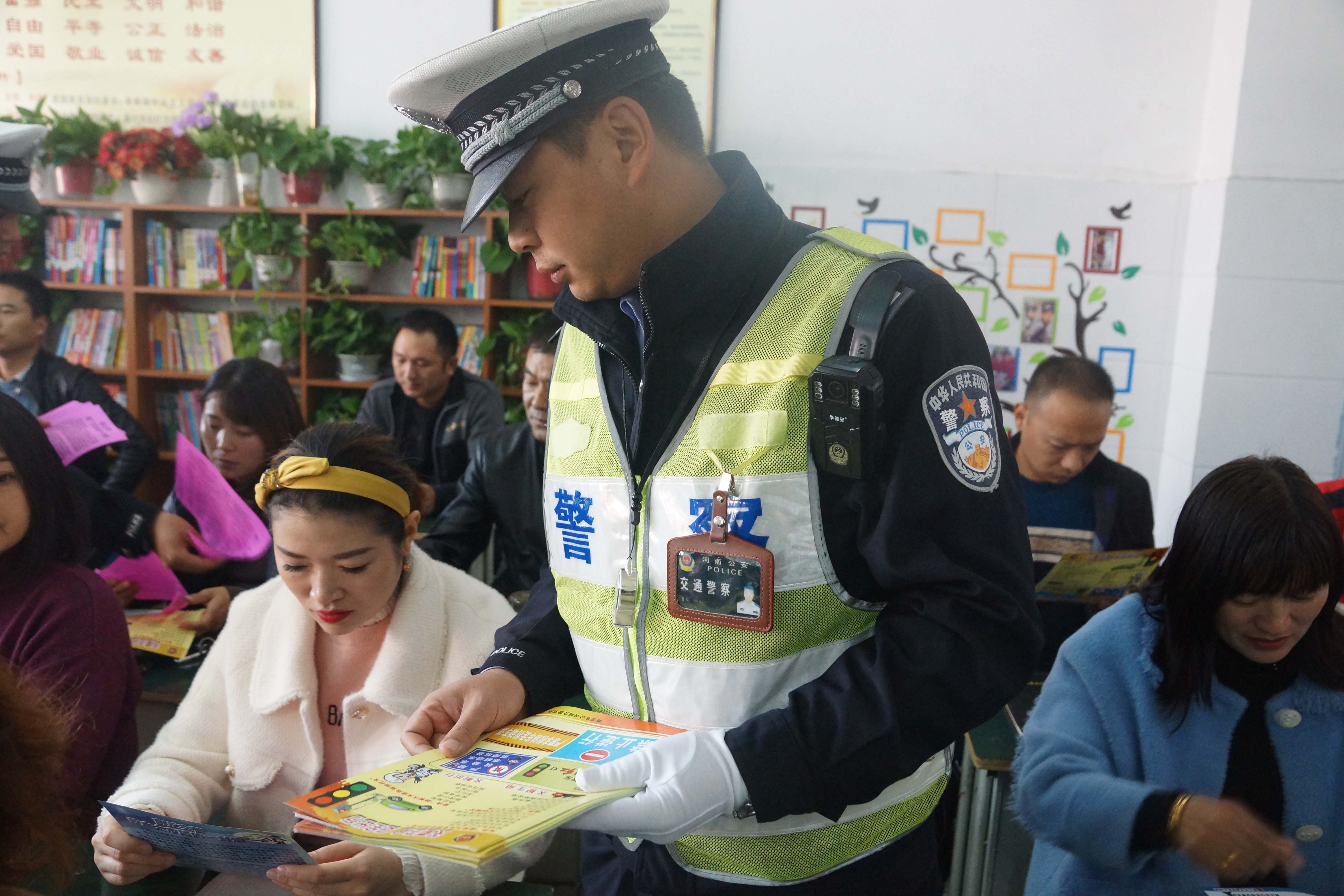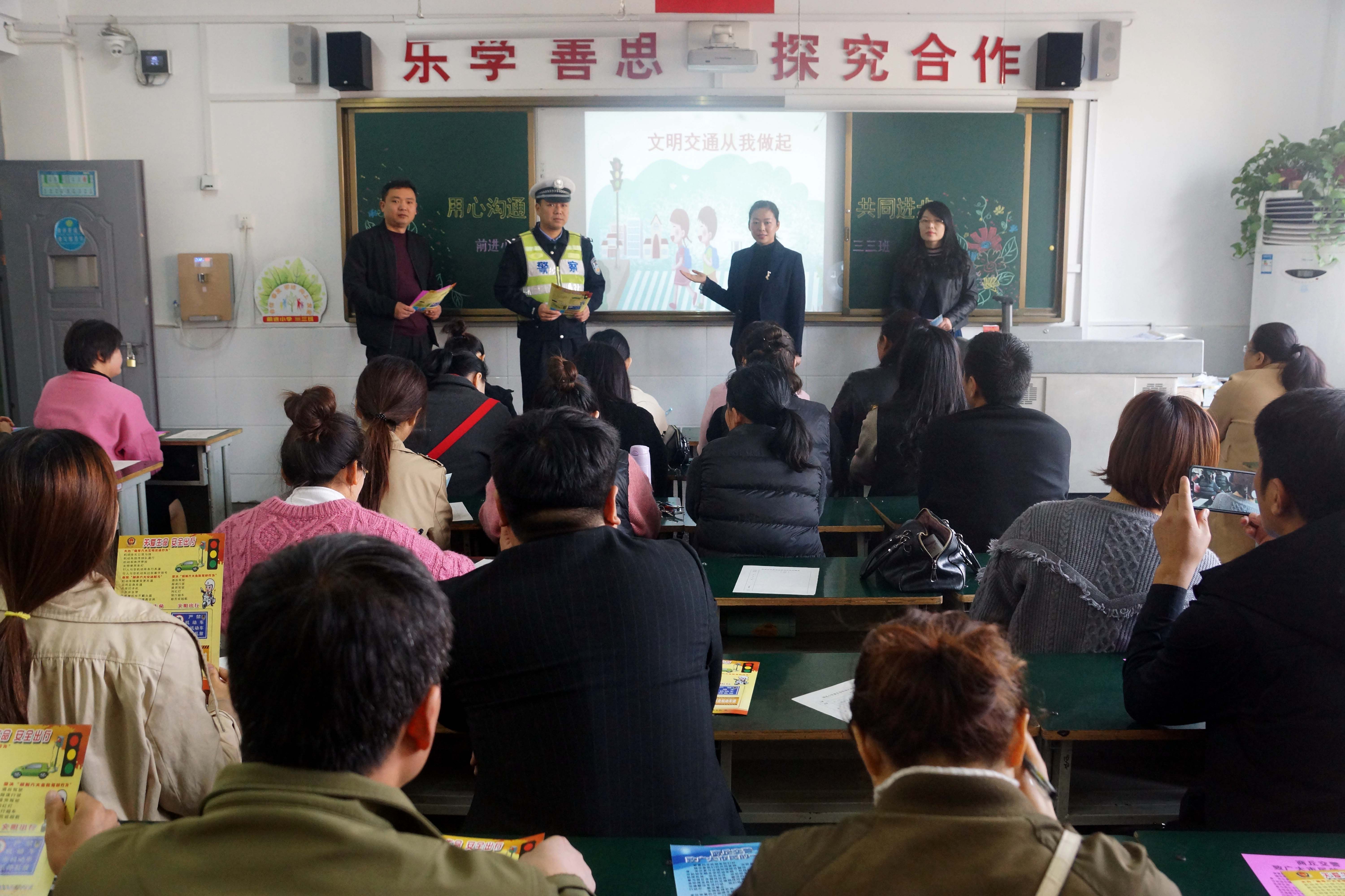 商丘市交警一大队民警在前进小学给学生家长宣讲交通安全知识 李健全 摄