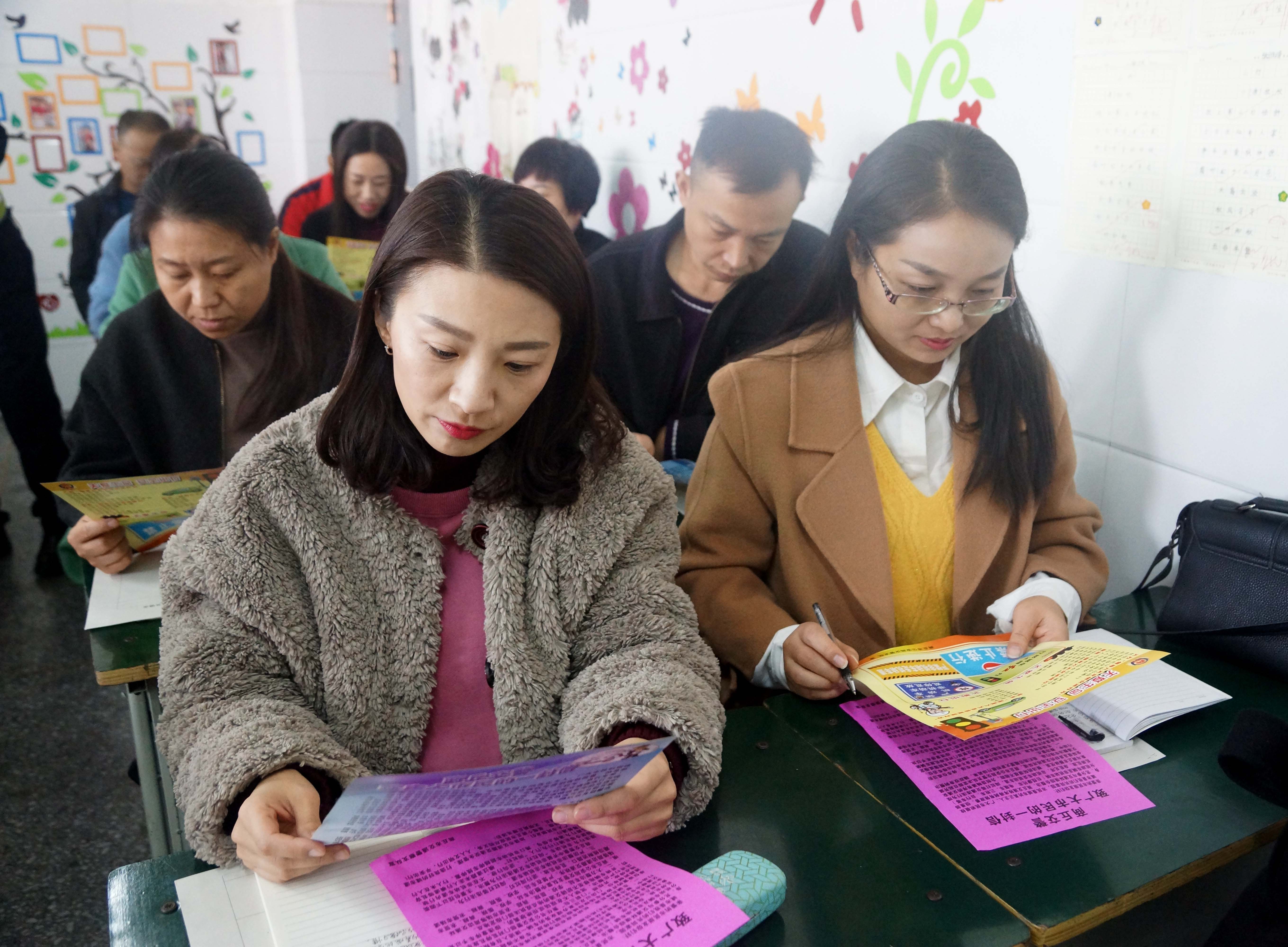 学生家长在认真阅读交通安全宣传彩页 李健全 摄