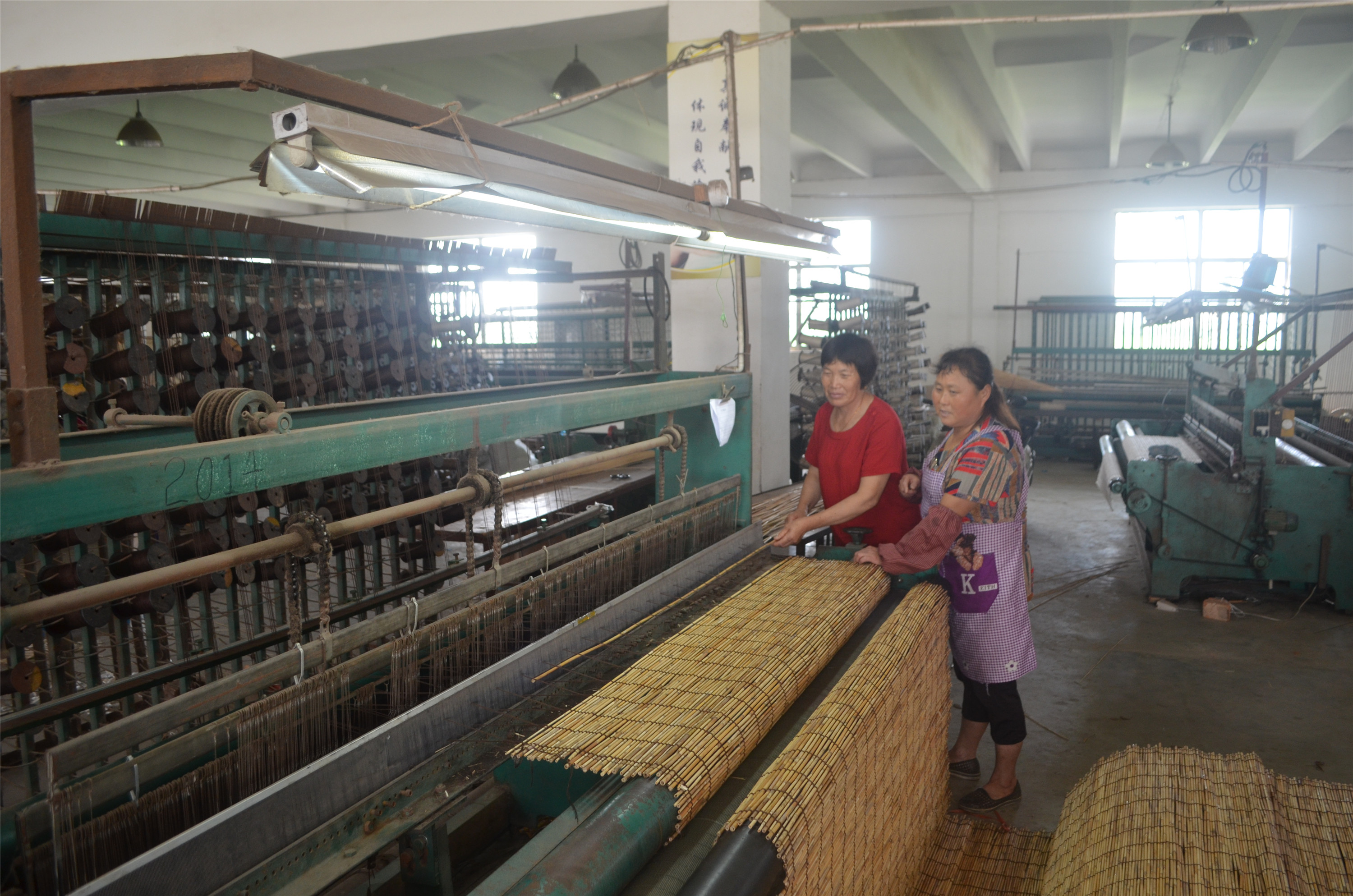 为了赶制一批订单,江苏桃园家饰有限公司的工人们一大早就来到车间上班。诺大的厂房内,工人们有的在做墙纸,有的在给编织物染色,有的在编制窗帘……