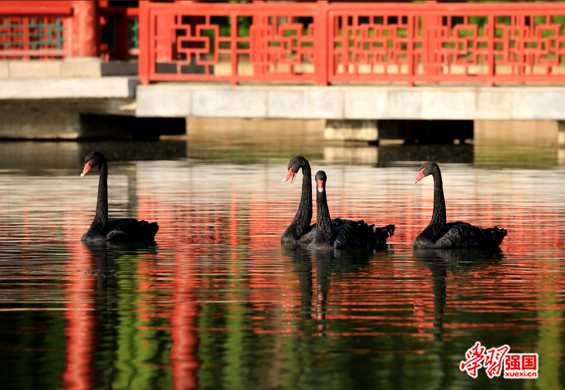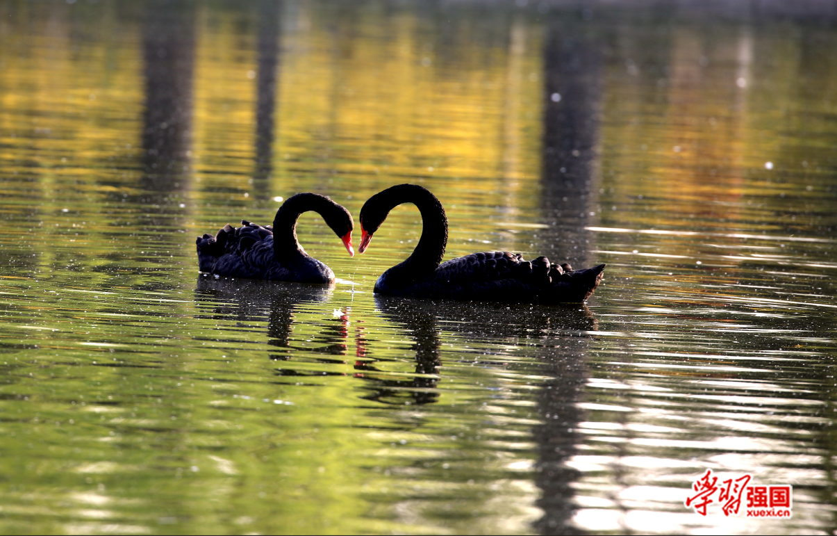 黑天鹅原产于澳大利亚,是天鹅家族中的重要一员,常栖息于海岸、海湾、湖泊等水域,成对或结群活动,主要以各种水生植物和藻类为食,通常是一夫一妻制,并且终身相伴。农涛 摄