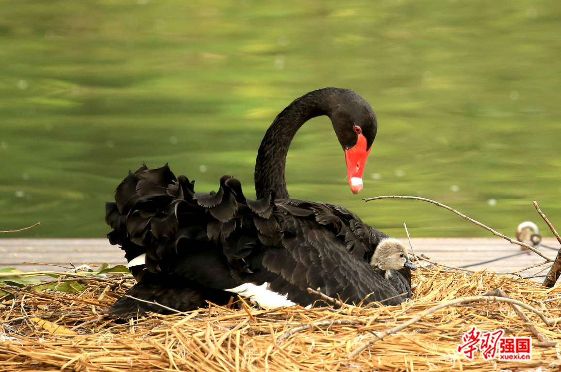 在经过大约36天的孵化后,黑天鹅宝宝将破壳而出,刚出壳的小宝宝羽毛呈浅灰色,依偎在妈妈翅下或腹下取暖,大约八个小时后,小宝宝将能从妈妈的翅下伸出头颈观察世界。 农涛 摄