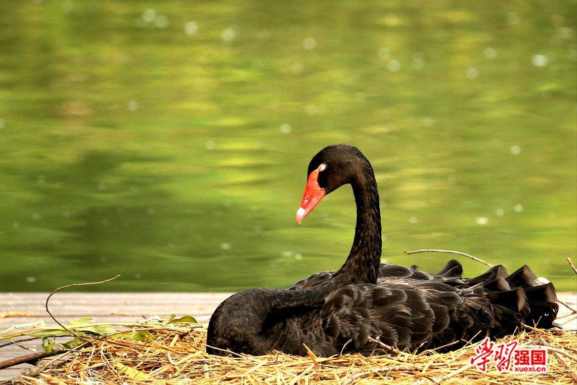 早春时节,黑天鹅夫妻会开始筑巢、产卵,孵化期间夫妻俩通常会轮流孵化,一只孵化时,另一只会担任警戒工作。图为黑天鹅妈妈在孵化时闭目打盹。农涛 摄
