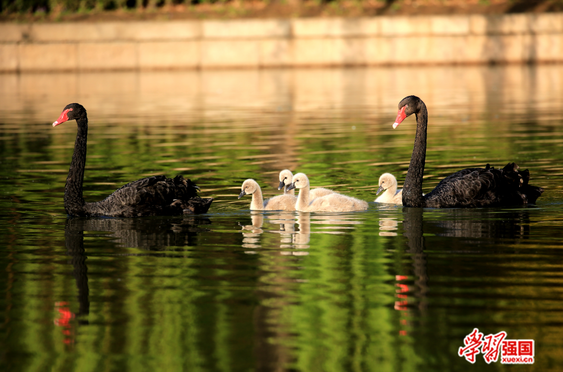 出生1-3天后,黑天鹅宝宝即可随爸爸妈妈下水活动,并且跟随爸爸妈妈寻找植物的嫩叶、果实、昆虫等为食。 农涛 摄