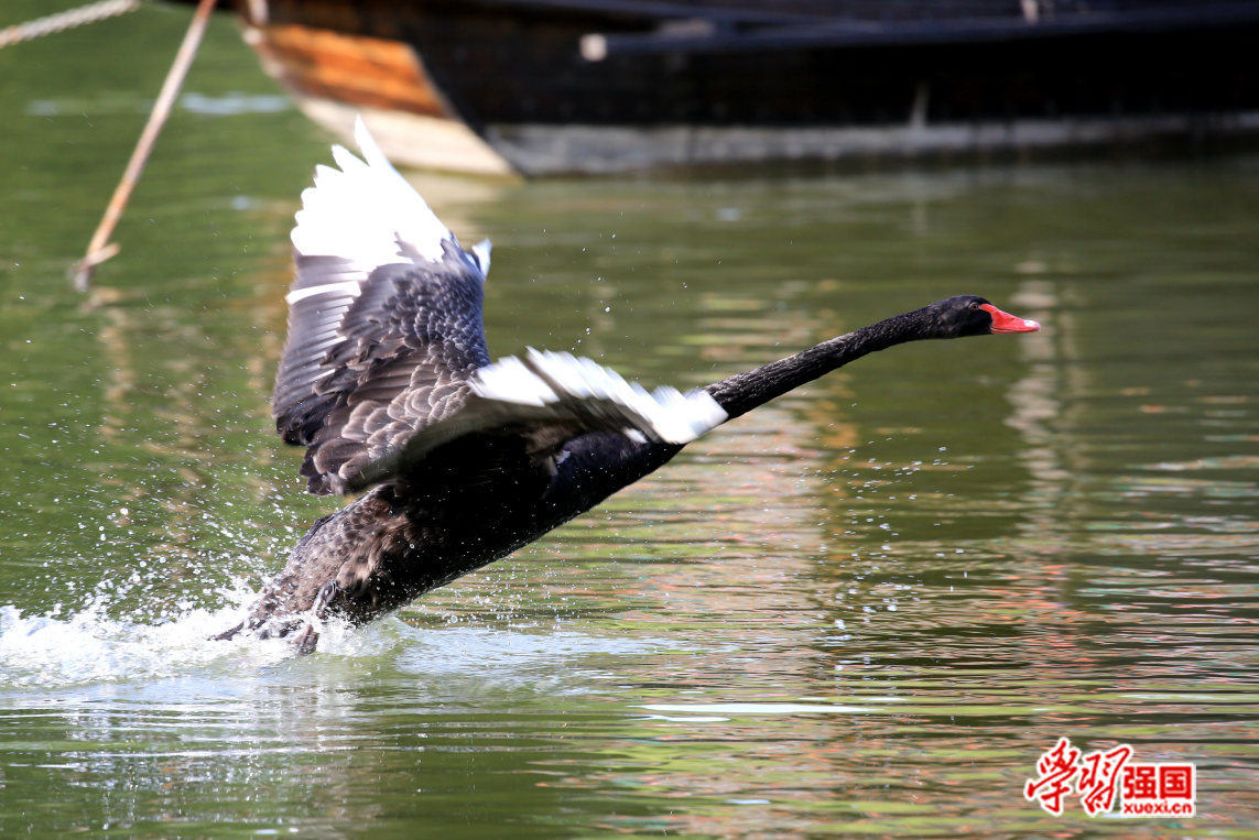 黑天鹅宝宝出生6个月后开始学习飞行,体验飞翔的快乐。农涛 摄