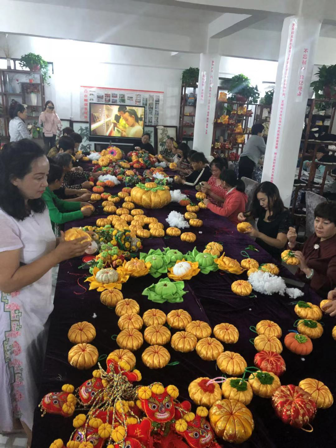 樱桃沟当地妇女在制作手工工艺品