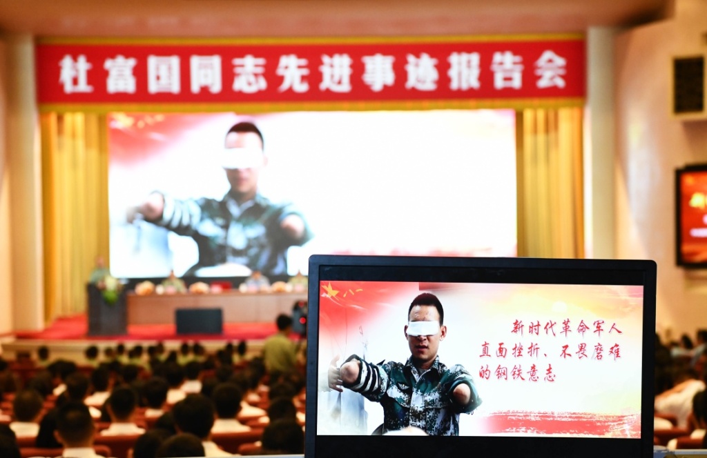 7月2日,中宣部、中央军委政治工作部、共青团中央在北京人民大会堂联合举行杜富国同志先进事迹报告会。新华社记者 张永进 摄