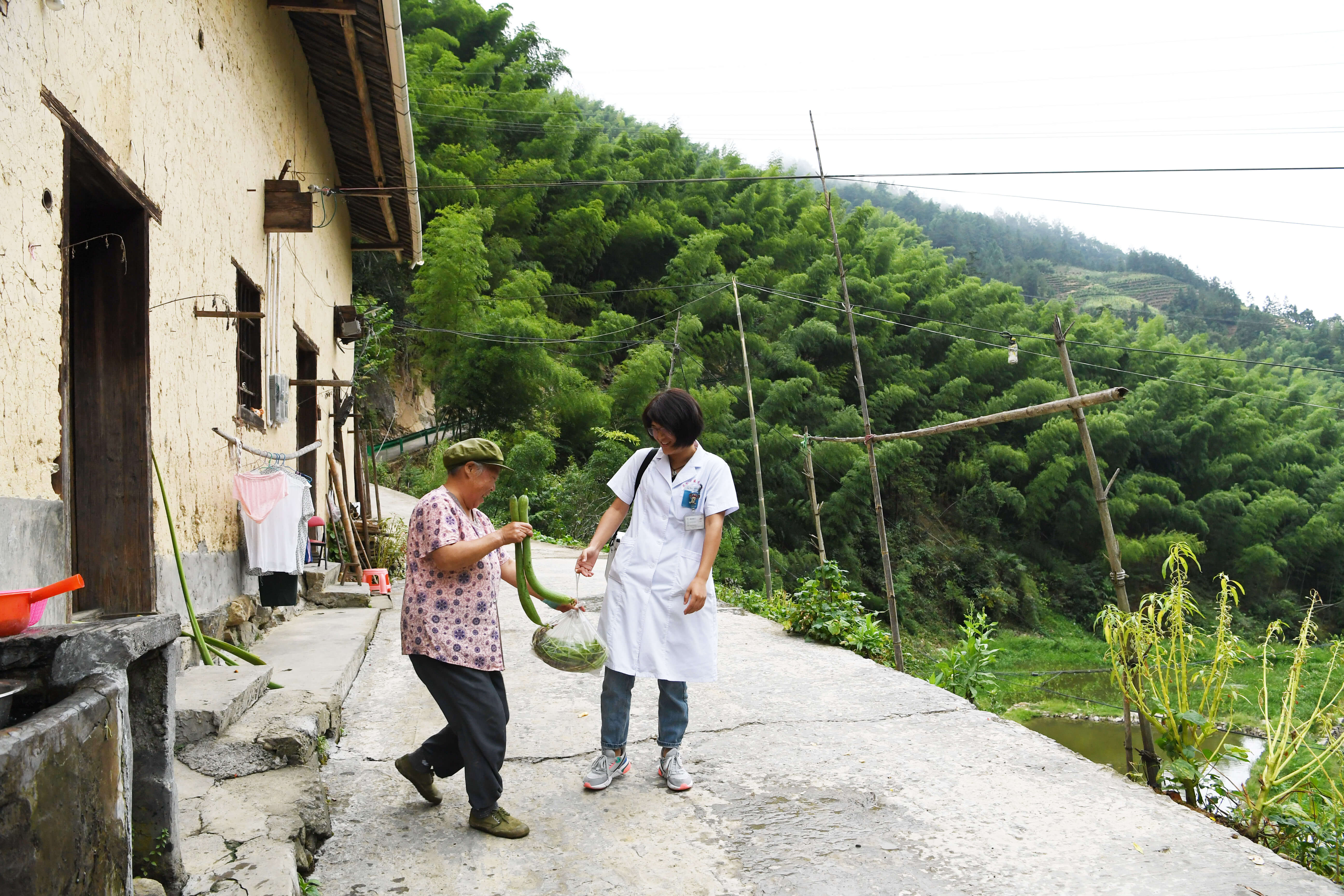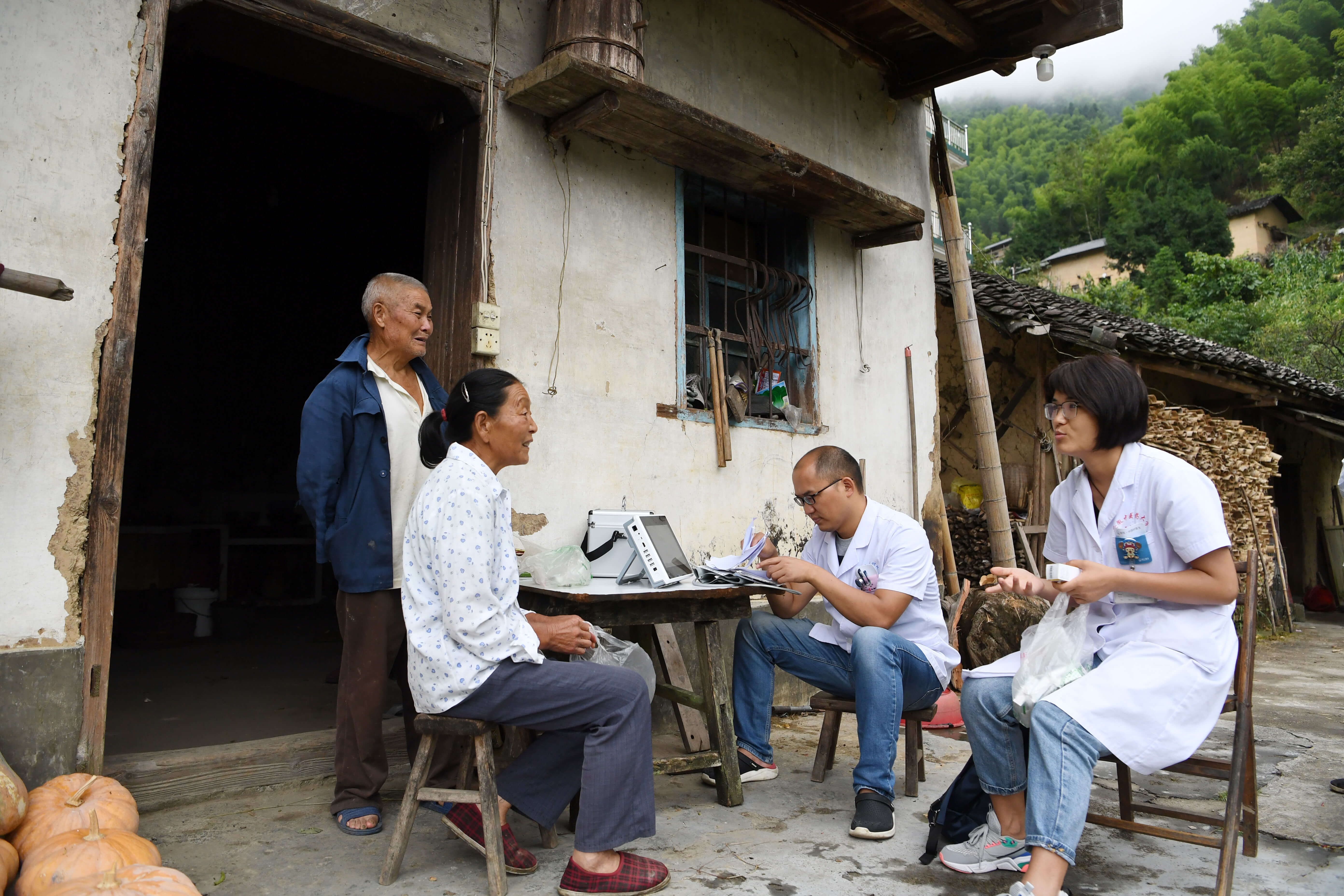 8月29日,驻村医生张建明、徐晓婵夫妻在休宁县璜尖乡清溪村周家源村民组巡诊。