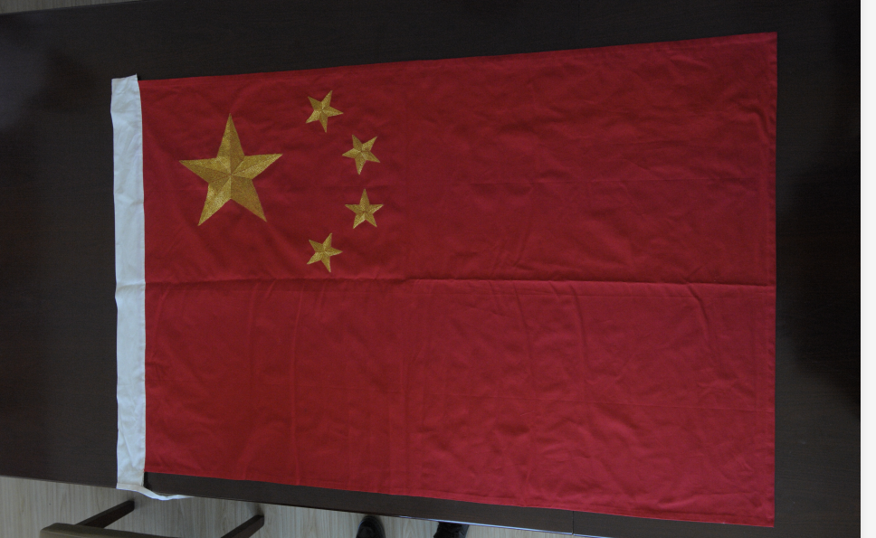 绣制完成的五星红旗整体豪放大气,细微之处严谨细腻。