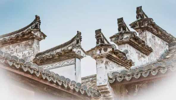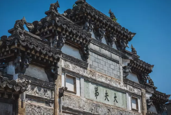 靠近宅邸,最先印入眼帘的便是这几块巨大巍峨的牌坊。