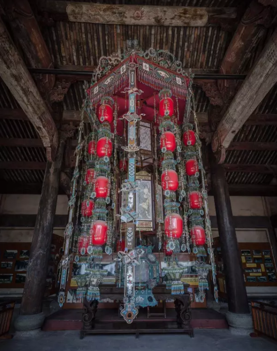卢宅还是一座雕刻博物馆,肃雍堂内的花灯,起自明代,盛于清代,《红楼梦》中描写的各种花灯这里都应有尽有。卢宅的花灯,华贵典雅,色彩斑斓。