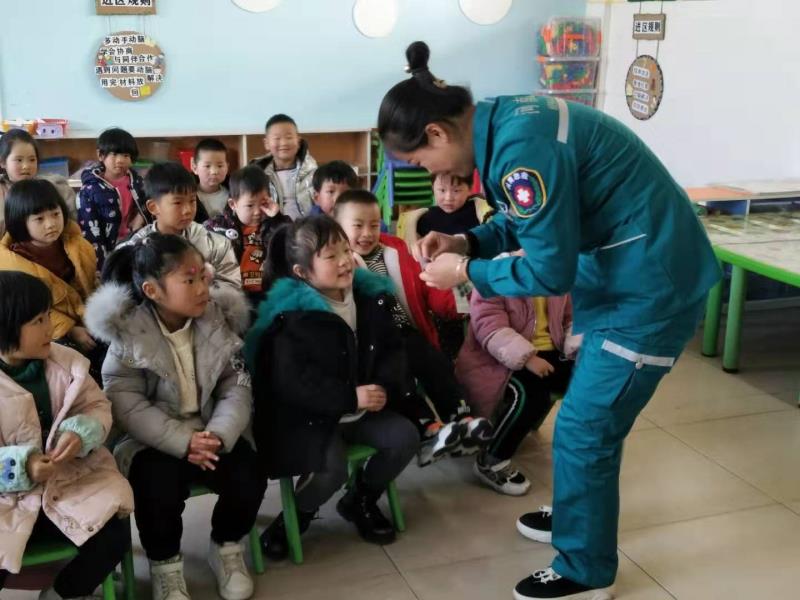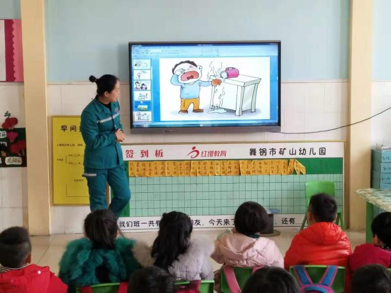 “小朋友们好!今天和大家一起分享一下我们在生活中,发生危急情况下如何正确拨打120?烫伤和溺水的预防以及简单的急救。”2019年12月19日下午,河南省平顶山市舞钢市120急救指挥中心培训员在矿山幼儿园展开了一场别样生动的急救知识小课堂活动。这也是舞钢市卫健系统开展健康科普(促进)教育“六进”活动的场景之一。