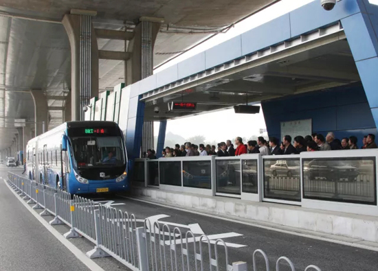 2008年4月22日,济南BRT—1号线载客试运行,由黄岗开往全福立交桥,是当时山东省第一条快速公交线路,给泉城人民带来更快捷、舒适、方便的公交出行体验。截至目前,济南公交BRT线路达到13条,济南成为国内首个实现快速公交网络化运营的城市。