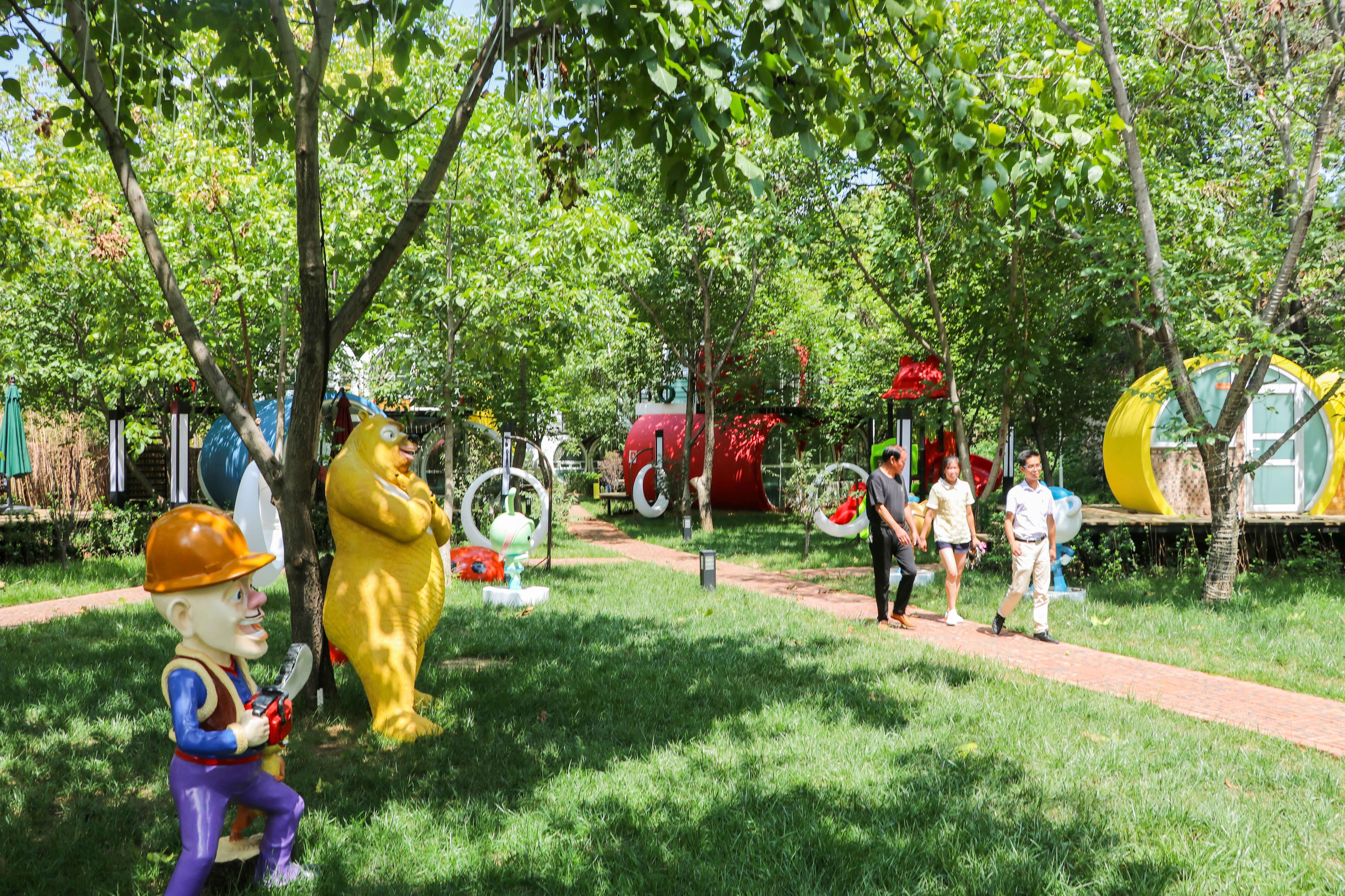 村口的核桃林下是五颜六色的胶囊公寓。这是柏尖沟村依托柏尖山旅游发展的壮大村级集体经济项目——“致青春”胶囊公寓,2019年“五一”期间投运,总投资238万元,可同时供100名游客入住。建成后,村里租赁给一家旅游服务企业经营,村集体每年收入13万元。