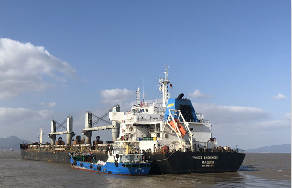 4.5个小时,完成燃料油加注、伙食补给、物料补给等综合海事服务,12月12日18时,5.7万载重吨的马绍尔群岛籍散货船“YANGTZEBRIGHTNESS”,驶离宁波舟山港虾峙门南锚地,前往山东廊桥港。据了解,这是我国首单外锚地综合海事服务业务,舟山有望成为全球最便捷的海上船舶服务区。