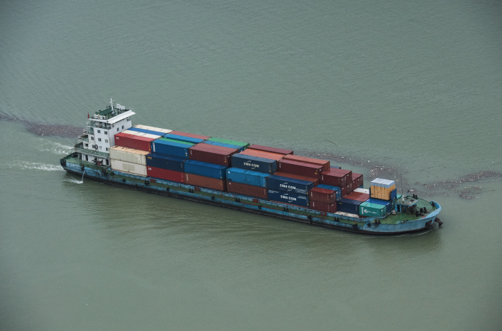 图为建造的长江上游最大的集装箱船,长130米,载400余箱,载重8000吨。2017年5月拍摄于重庆奉节县港口。何建钢 摄