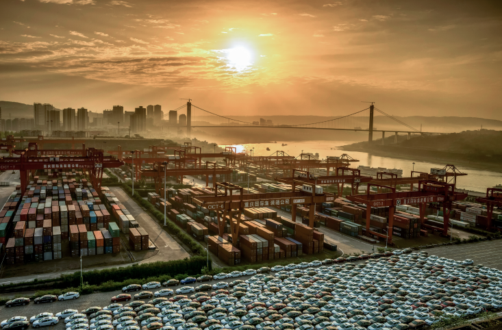 现在的重庆寸滩发展成为一个现代化的港口,是西部地区出海大通道,2018年,集装箱量达到60万箱。2014年7月拍摄于重庆寸滩港。何建钢 摄