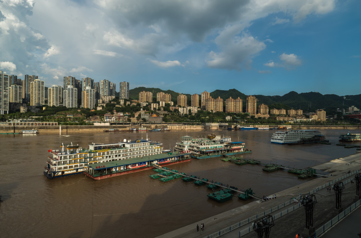 现在的重庆朝天门为邮轮客运港,建有9个邮轮码头,年客运量在300百万人次以上(主要是三峡游客)。2017年7月拍摄于重庆朝天门港口。何建钢 摄