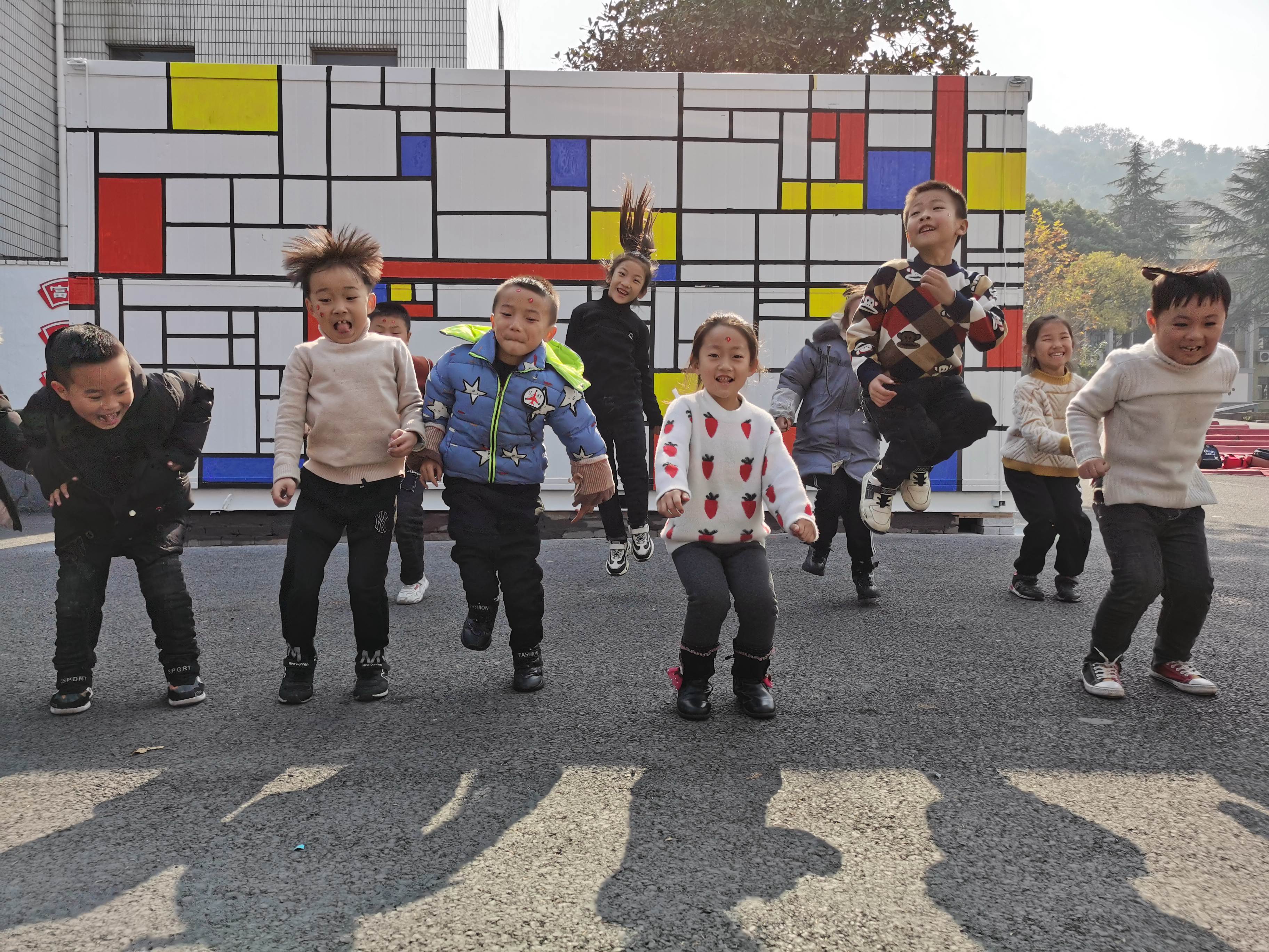 学生们看到装饰一新的集装箱高兴地跳了起来