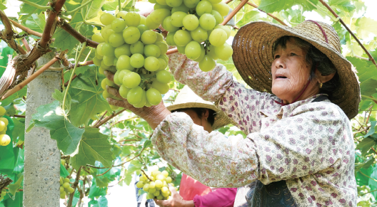 金山区吕巷镇的农民朋友们在采摘葡萄。(资料图)