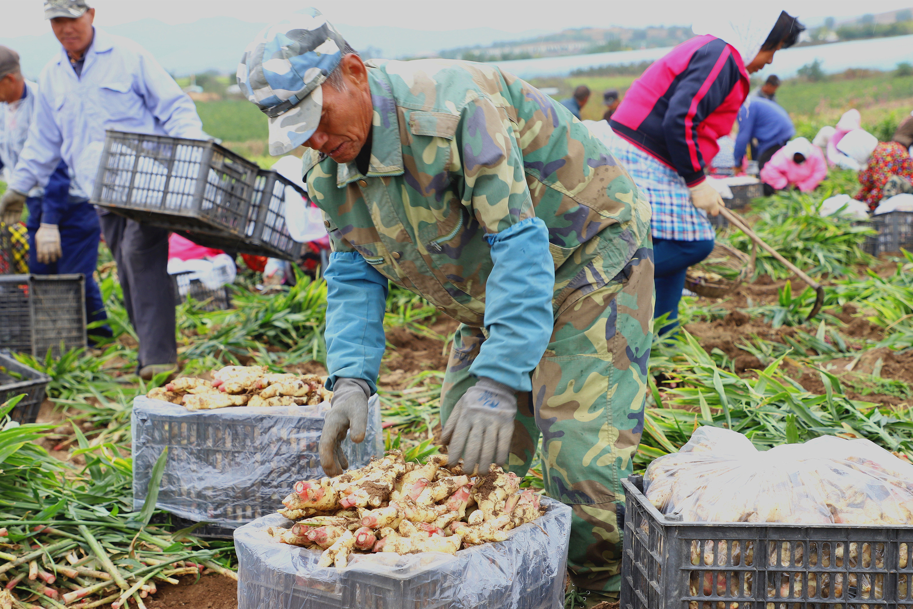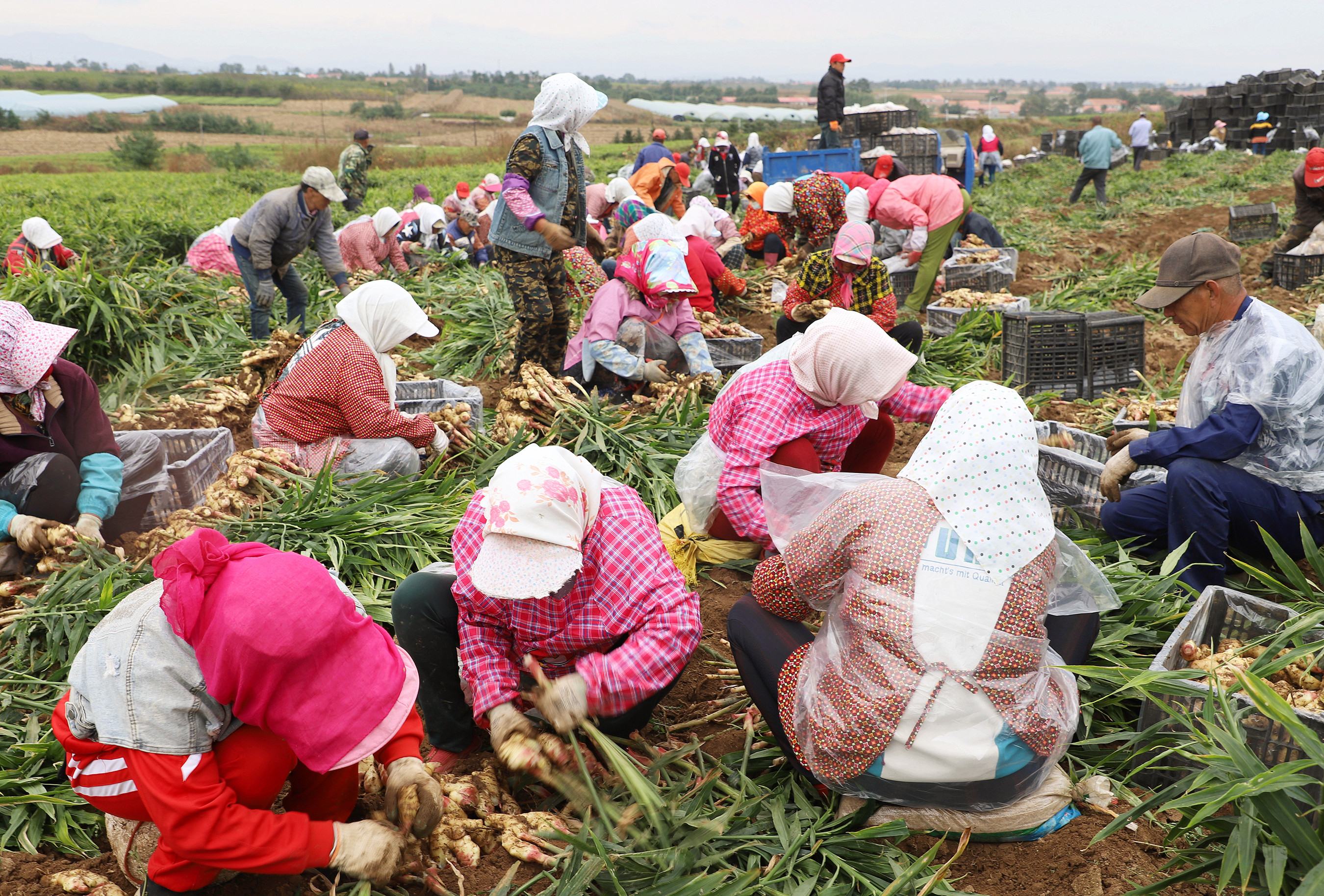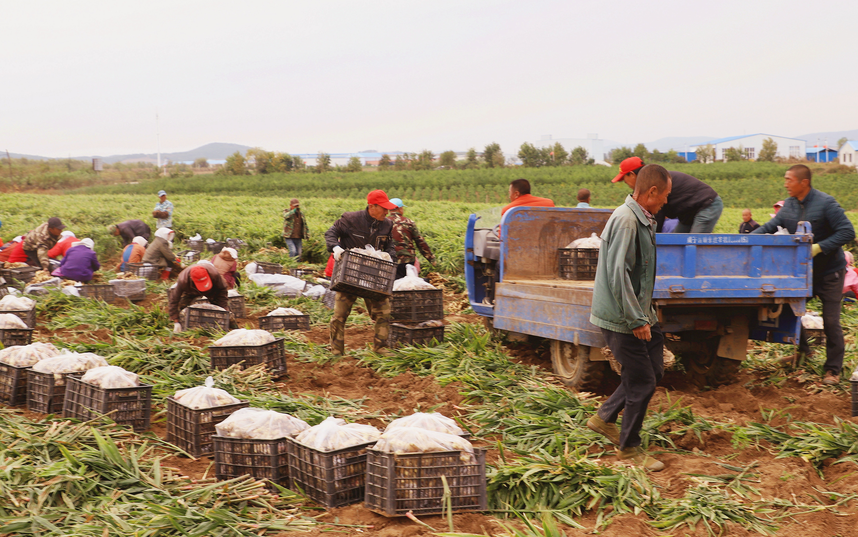 庄河东部青堆镇,姜农们陶醉于收获生姜的喜悦中,起姜、除土、装筐……每天忙得不亦乐乎。