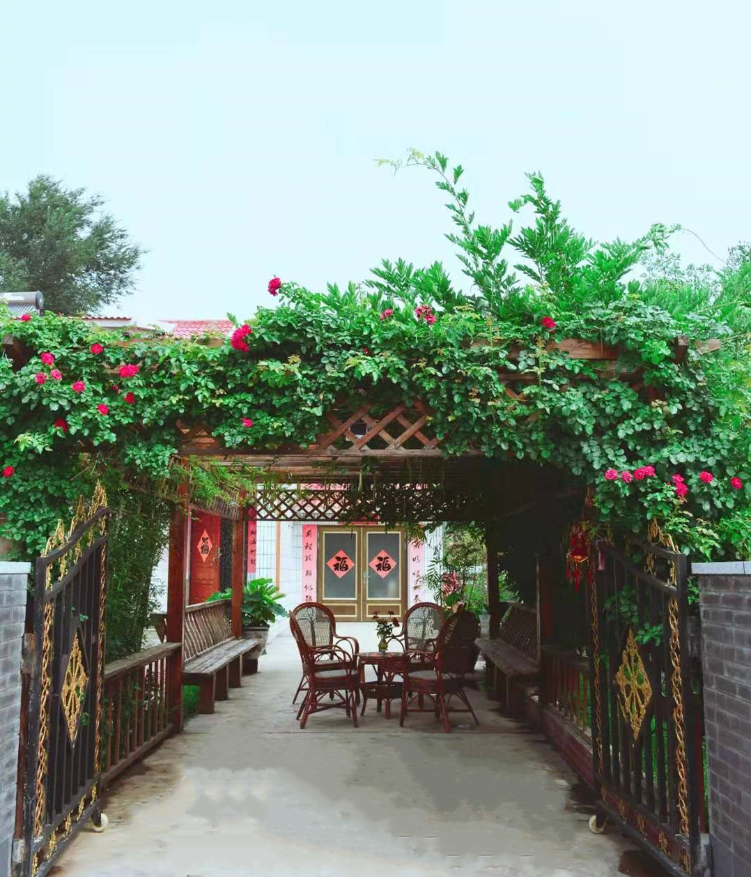 整洁的楼房、娇艳的荷花、江南风情的院墙、挂满鲜花的长廊,大家没看错,这不是江南园林,这就是我们的现代农村小院!