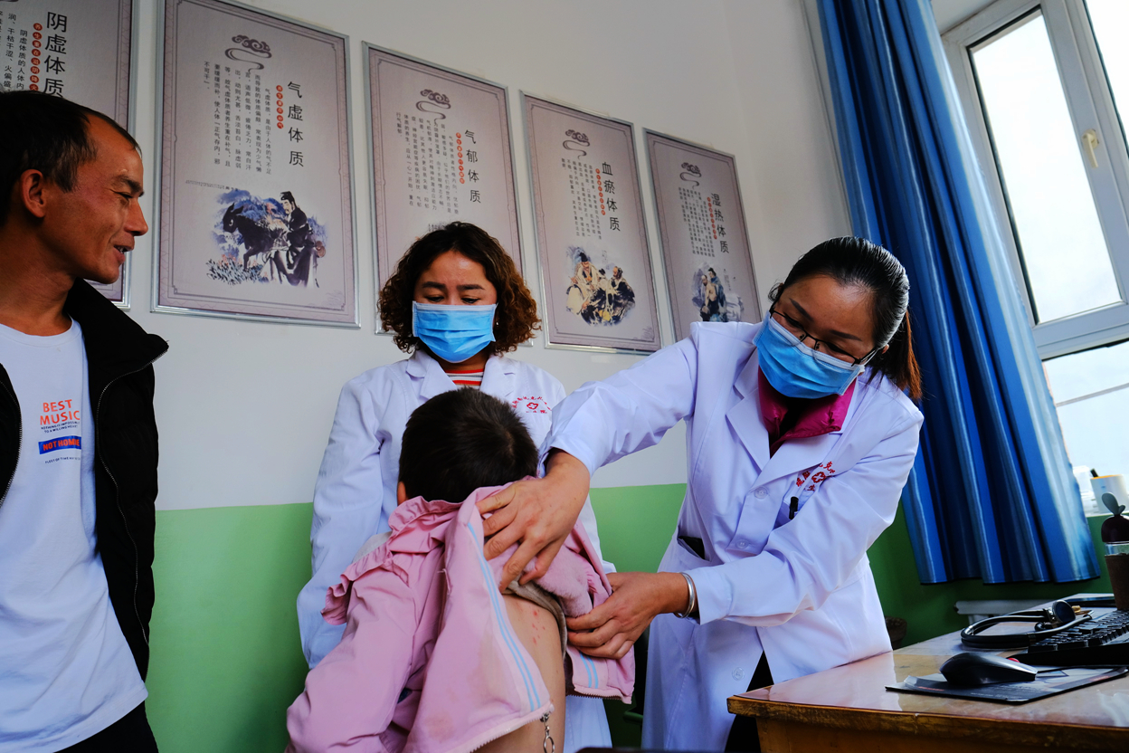 李海萍医生在疏附县托克扎克镇卫生院给病患看诊,来自丈夫的理解和信任,还有那句“我支持您的决定,家里有我”是她最大的后盾。