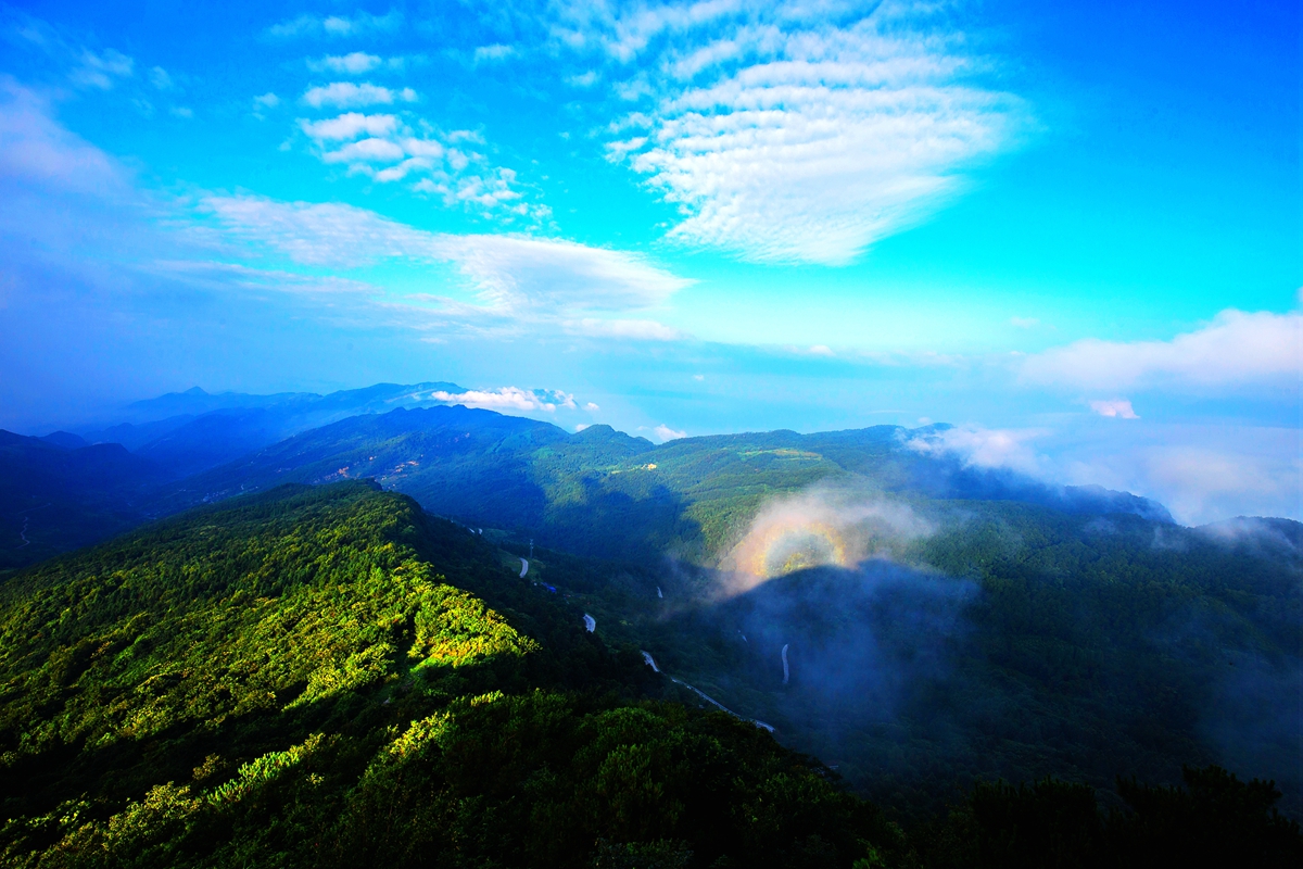 华蓥山宝鼎位于中国优秀旅游城市四川省华蓥市溪口镇境内,始建于唐代,盛于清咸丰年间,是山岳型自然风景区和宗教礼仪建筑群,全国八大佛教圣地之一。享有“西朝峨嵋,东朝宝鼎”之美誉,是我国八大佛教圣地之一。宝鼎最高海拔1590米,周围群山拱卫,山形似鼎,故称“宝鼎”。宝鼎始建于唐朝,名“瑞峰寺”,后改名为“光明禅寺”,再改为如今的“光明寺”,先后兴建了光明寺、黄龙寺、南宗堂、观音寺等寺庙39座,以其悠久厚重的佛教文化闻名天下。华蓥山的“四绝”“八景”让人叹为观止,其中“四绝”即:日出、云海、佛光、圣灯;“八景”即:华蓥积雪、宝鼎连云、三花异树、九子灵泉、渠江落日、石镜斜阳、华严古洞、玉壁浮光。这些自然景观充满神韵、风光旖旎,气势磅礴,辉煌奇特。