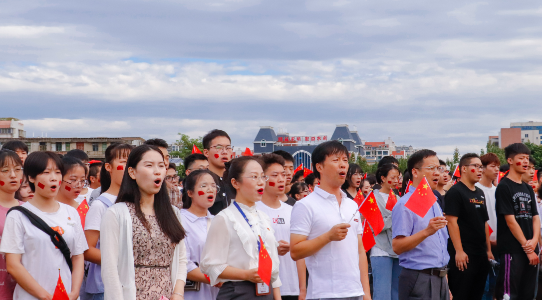 学院开展歌唱《我和我的祖国》告白祖国、千人齐聚升国旗活动