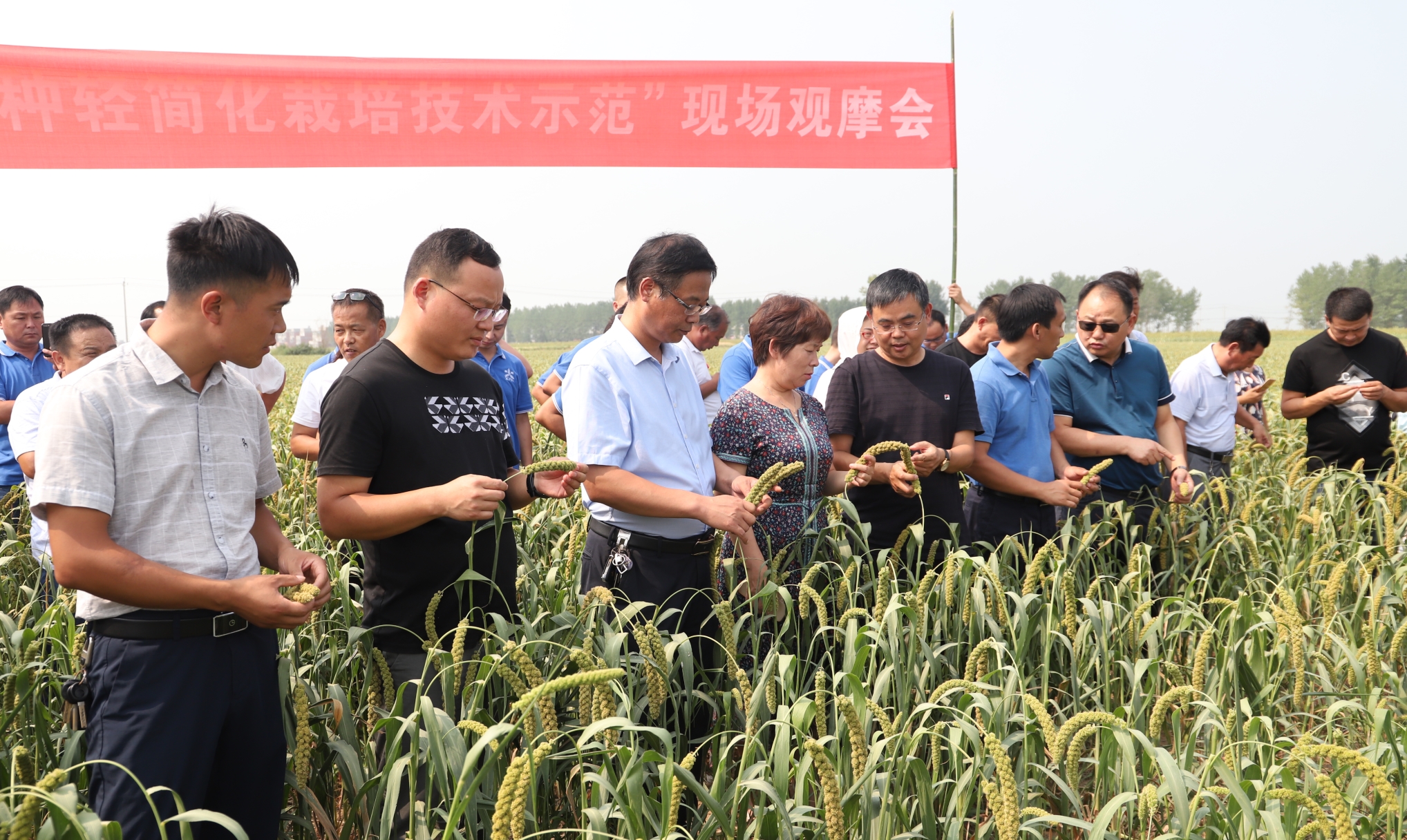 2019年8月24日,河南南阳邓州市农技推广中心组织专业合作社、种粮大户等农业新型经营主体负责人100多人,深入部分乡镇观摩“院县合作”小杂粮标准化种植情况。省农业科学院粮食作物研究所、省农业科学院推广处等单位的研究员及邓州市农技中心全体技术人员参加观摩。