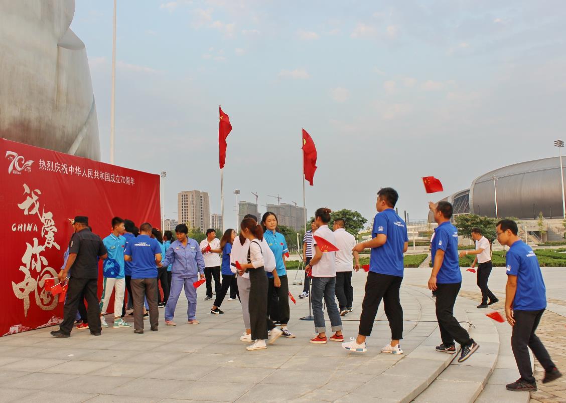 2019年9月29日,焦作市体育场馆管理中心在该市太极体育中心太极广场举办“我爱你中国”祝福签字仪式,该市体育场馆管理中心全体干部职工纷纷写下了对祖国深深的祝愿,随后大家舞动手中鲜艳的五星红旗,共同唱响《我和我的祖国》,祝福祖国明天更美好。