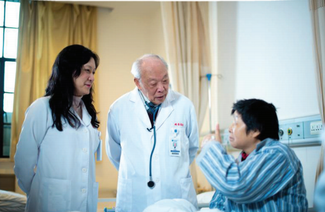 王振义(中)只要自己身体无碍,风雨无阻都会来到患者身边。