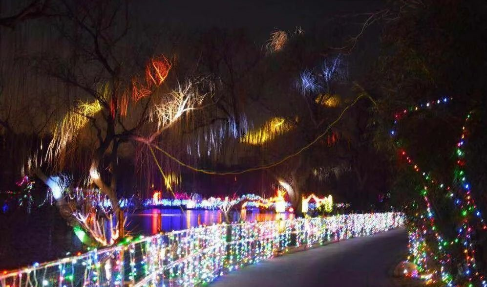 新春佳节,到处洋溢着欢乐祥和的气氛和浓浓的年味。山东潍坊安丘市民到青云山民俗游乐园赏花灯,迎接新年到来。