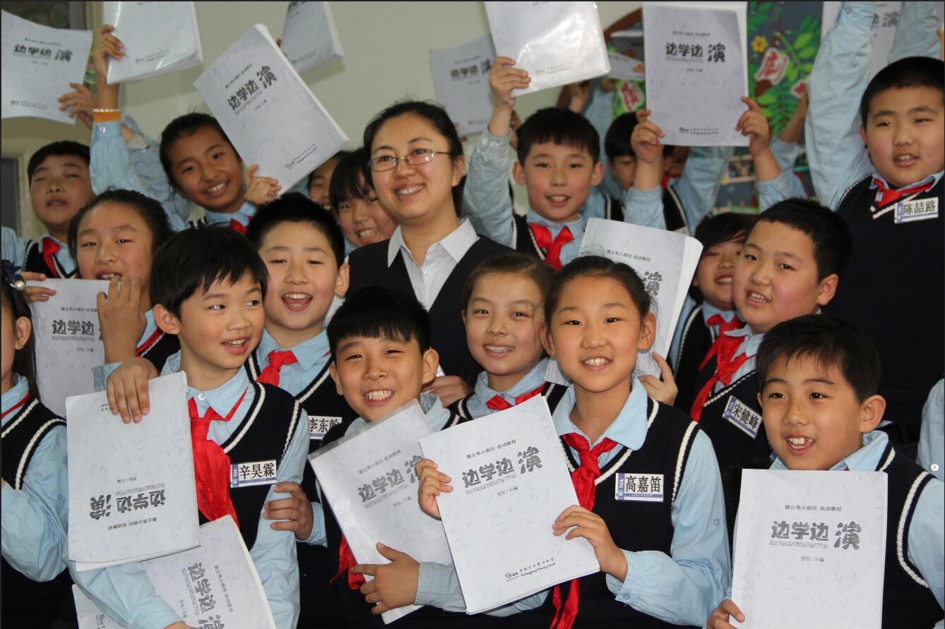 为了让学生端正做人、快乐成长,卢老师在班级组织成立了“蒲公英小剧社”,并编写了活动教材——《边学边演》。