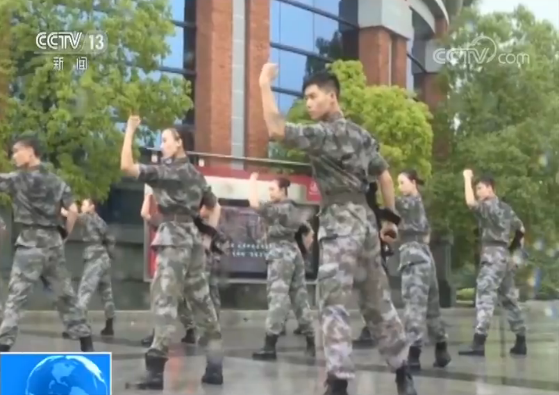 在华东政法大学,由驻军和武警部队官兵组成的宣传小分队,以快闪的形式展现军人风采。