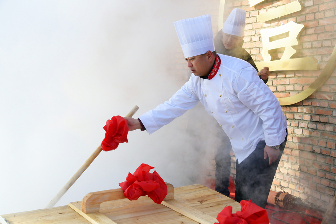 “塞外锅王”前舞起狮子。