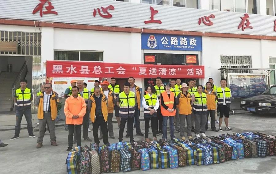 为切实做好夏季防暑降温工作,保护广大一线职工的安全和健康,有效防控高温中暑和各类事故发生, 8月24日,四川省阿坝州黑水县总工会牵头开展了“情系职工 • 夏送清凉”慰问活动。看望慰问黑水县国道347线茂红路提升改建工程MH4标段、黑水县公路路政局及阿坝州平安保安服务有限责任公司黑水县分公司等奋战在高温酷暑下的一线职工。