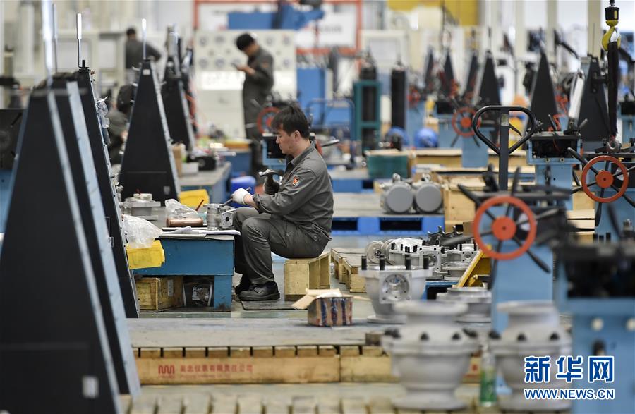 2018年5月16日,在宁夏吴忠仪表有限责任公司自动化产业园,工作人员在装配控制阀。这家老企业力争通过科技创新,实现加工制造自动化、生产设备网络化、过程管理数字化、计划调度智能化。新华社记者 王鹏 摄