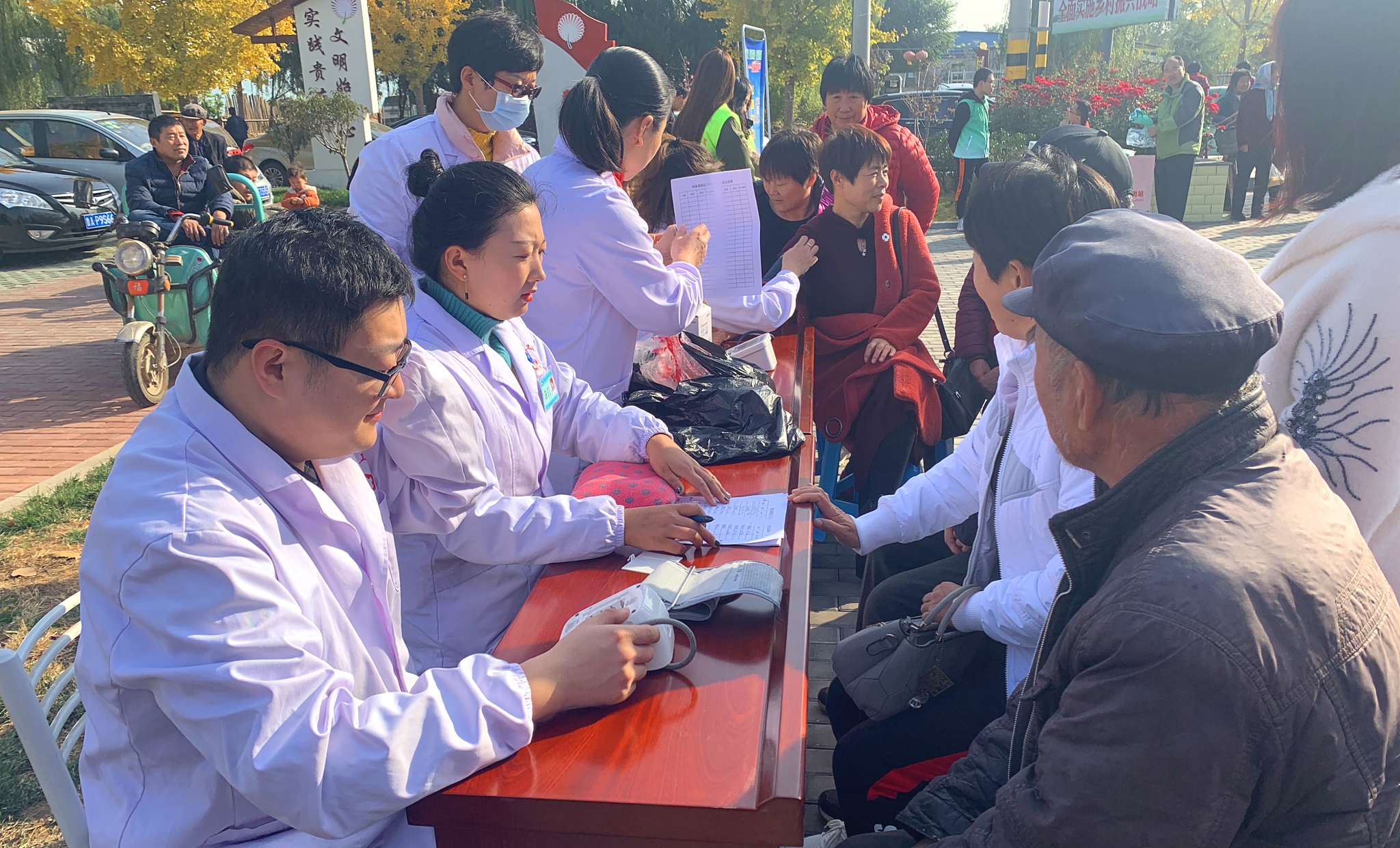 在义诊区域,医生和护士们认真负责地为大爷大妈们量血压、测血糖,耐心解答关于医疗、保健等方面的问题。